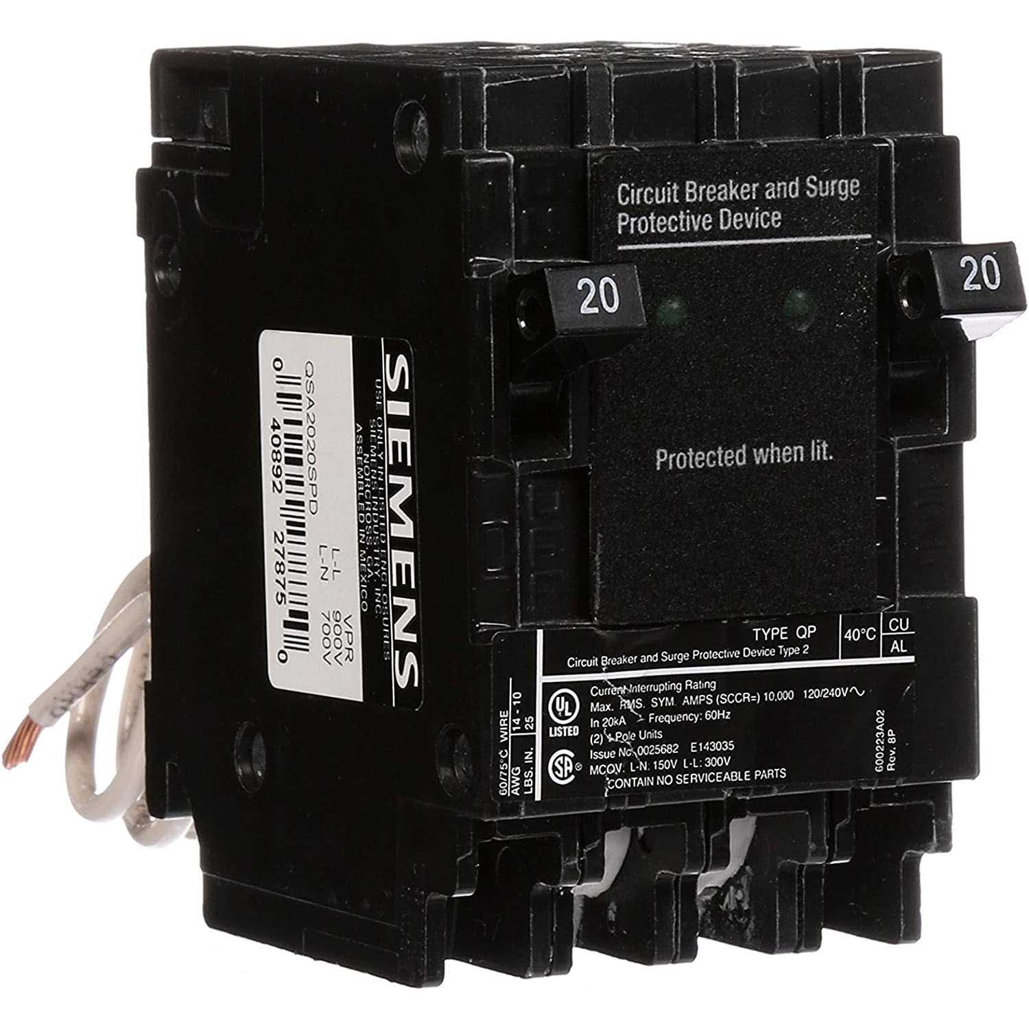 Siemens QSA2020SPD 2 Pole Circuit Breaker The Siemens QSA2020SPD is a 2 Pole thermal magnetic molded case circuit breaker with a current rating of 20 Amps and a voltage rating of 240V. It has an interrupting rating of 10kA@240V. The QSA2020SPD has a plug-in connection type and includes LI – long time and instantaneous functions.