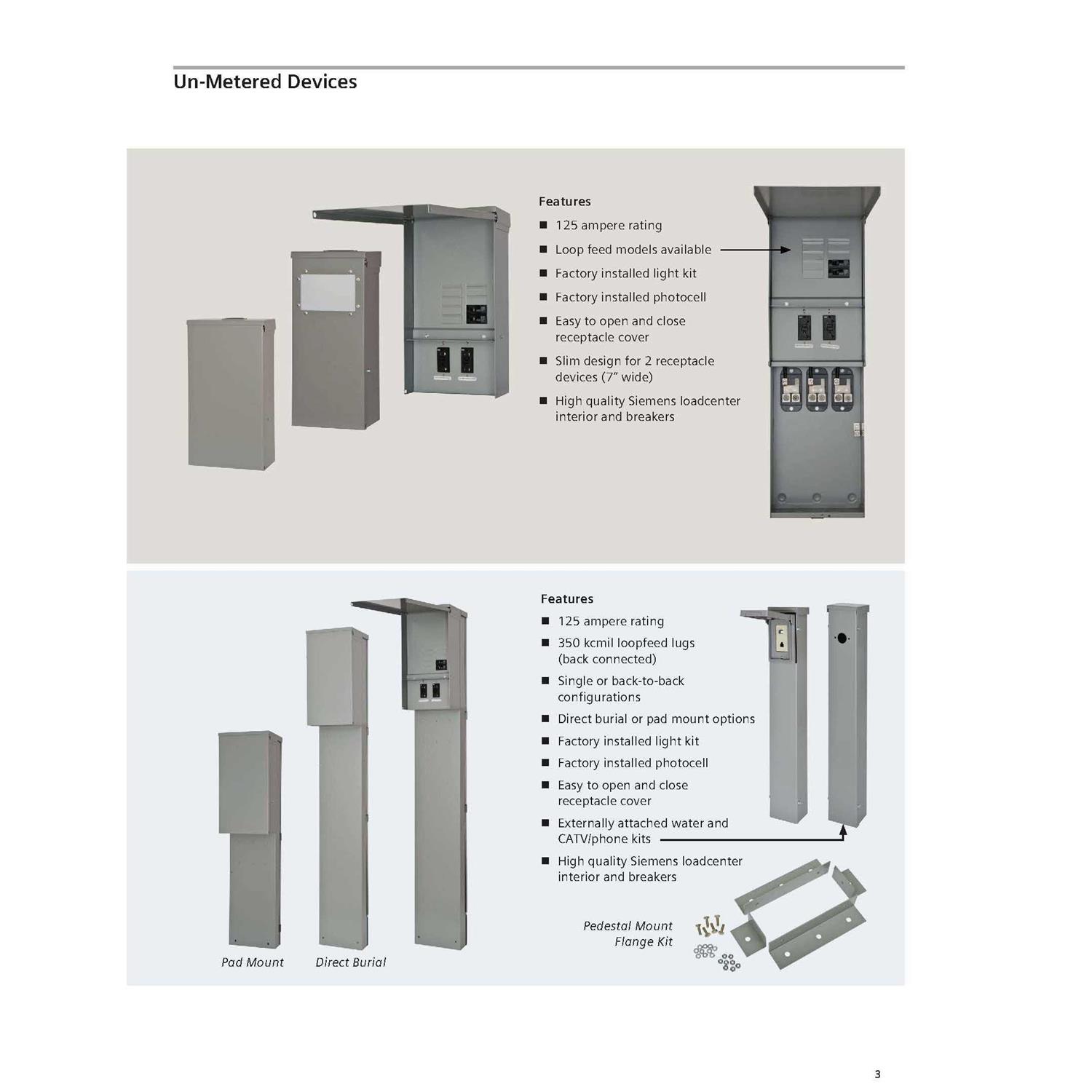 Talon’s line of power outlet panels are designed to meet the demands for temporary power at construction sites and recreational vehicle parks. For construction site applications power outlet panels are installed for temporary use only until electrical power is available at the site. Recreational Vehicle parks use power outlet panels on a permanent basis as a power source for the RV’s distribution system. A wide variety of configurations are available to address almost any application. Design options include surface (pole mount) and pedestal mount construction with or without meter socket provisions and top or bottom feed.