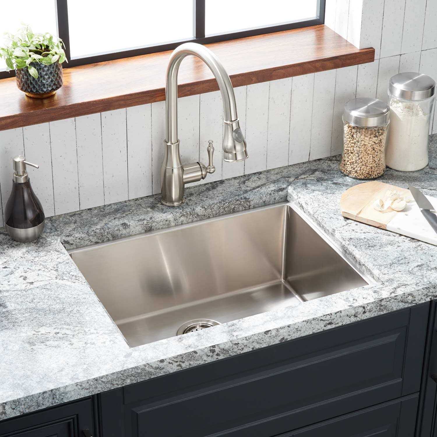 Signature Hardware 448364 24″ Ortega Stainless Steel Undermount Kitchen Sink – Rear Drain