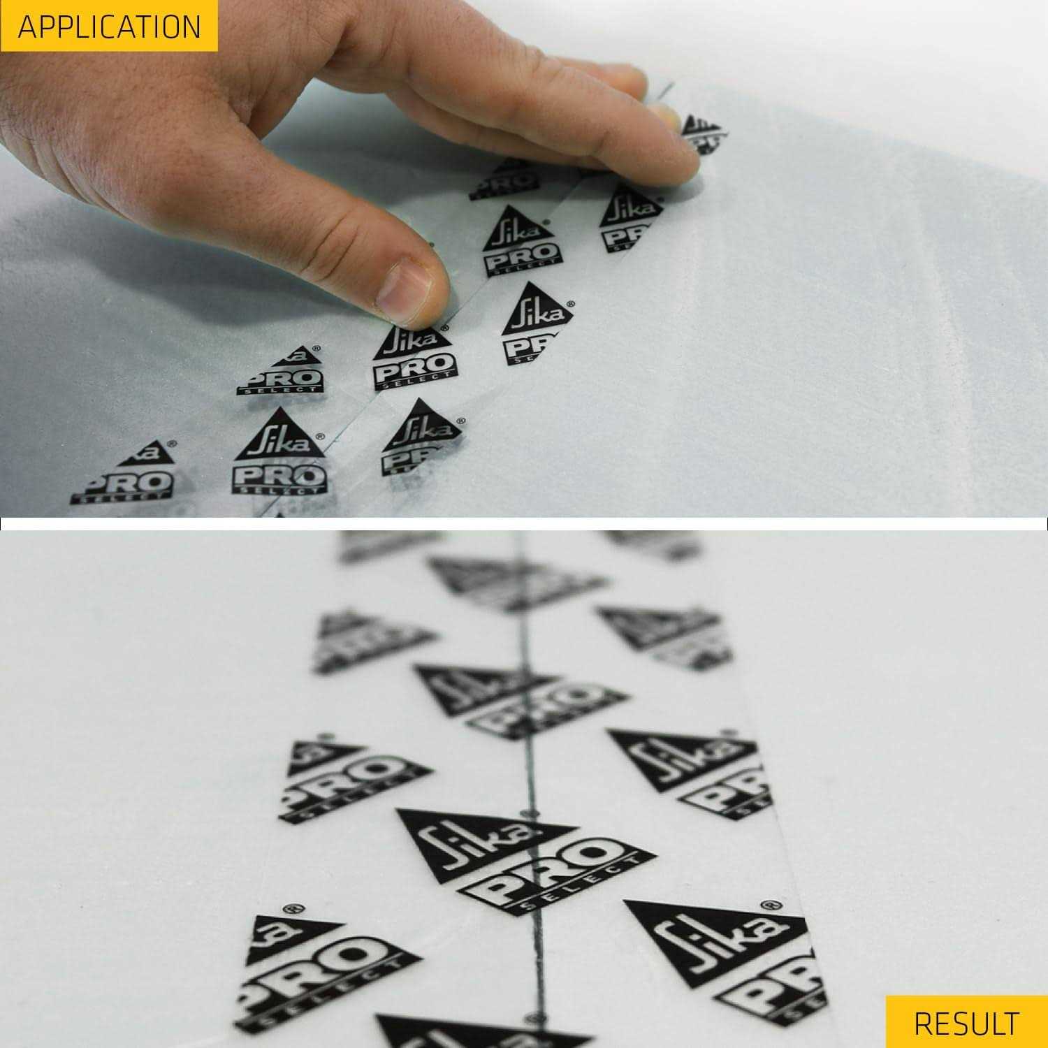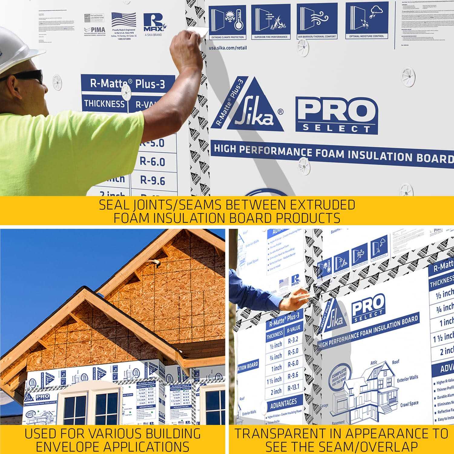 SikaSEAL Insulation Seam Tape is a clear film, acrylic adhesive tape used for various building envelope applications. Apply the tape evenly over the joint (e.g. wall sheathing, foam insulation boards) or overlap seams (e.g. house wraps). Smooth out wrinkles in tape during installation. Applying more pressure yields more surface contact, and therefore, creates a better bond.