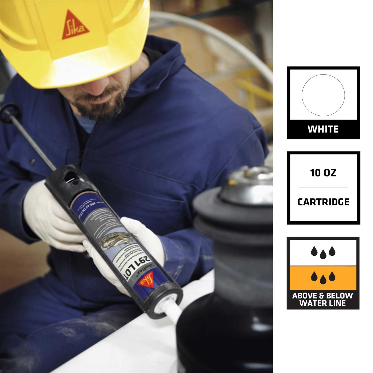 Silicone Adhesives by SIKA. Details:Sikaflex 291 LOT is a 1- component, marine grade polyurethane elastomeric adhesive and sealant. It is a moisture cured, non-sag system designed with a long open time for jobs that require more time. Sikaflex 291 LOT is an all-purpose marine sealant which may be used for light duty bonding. Sikaflex 291 LOT can be applied above and below a water line, resists salt water and can be left open for a long period of time in humid climates or on jobs requiring additional application time. Sikaflex 291 LOT can be painted, comes in versatile packaging, offers excellent bonding, is permanently elastic, has high strength and can be sanded. Sikaflex 291 LOT is NSF approved for potable water and USDA approved for incidental food contact.