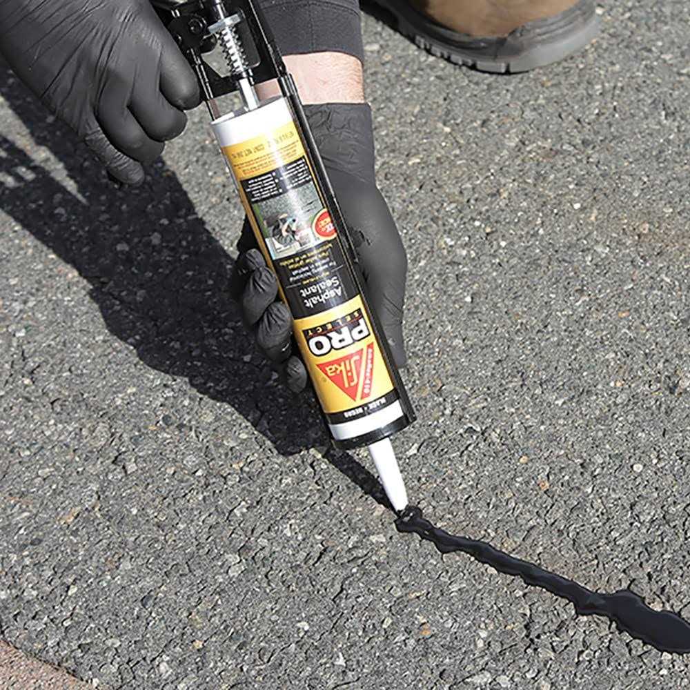 Joint Sealants by SIKA. Details:Sikaflex-410 Asphalt Sealant is a premium-grade, one component, self-leveling, elastomeric, hybrid sealant. This durable and flexible sealant is great for filling cracks in asphalt driveways, parking lots, roadways, aprons, and other asphaltic surfaces. It self levels, reducing the number of tools needed to complete your project and cures to a matte black finish to blend with existing asphalt.