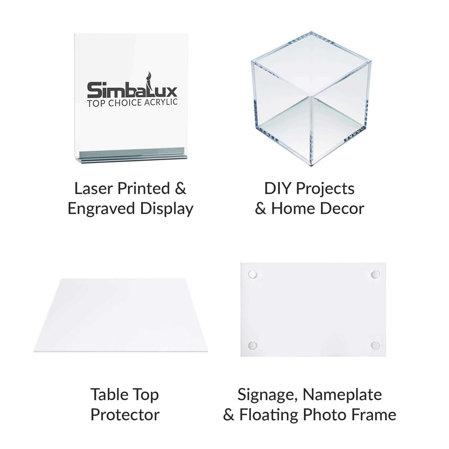 SimbaLux Acrylic Sheet Clear Cast Plexiglass 12” x 12” Square Panel 1/8” Thick (3mm) Transparent Plastic Plexi Glass Board with Protective Paper for