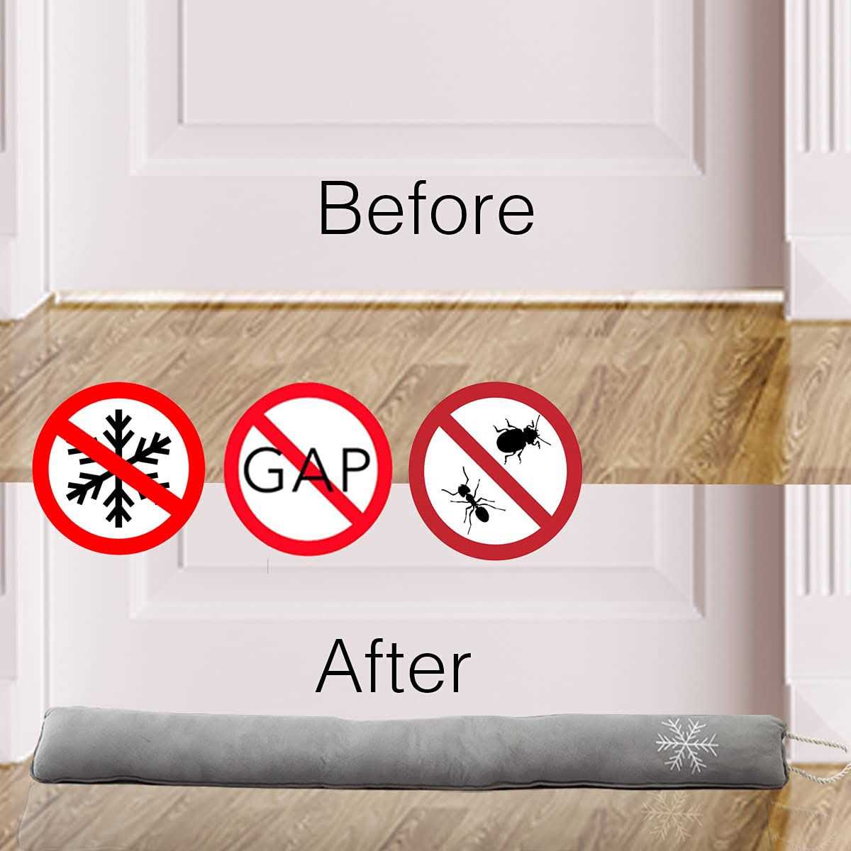 Simply Genius Door Draft Stopper 36: Draft Guard, Draft Blocker for Interior, Bottom of Doors, Under Window, Garage, Fireplace, Energy Saver, Soundproof Room bottom door seal – Easy fix window or door insulation: Attractive hallway dcor and economical home improvement, filled and weighted fabric draft guard will block air gaps, save energy and keep heat or air conditioning indoors. Use as door bottom seal at patio or screen, back or front door or as a fireplace draft stopper. Easy to use under door seal for attic, basement or garage door to reduce airflow into the home and keep the cold draft away. – Multifunctional home improvement items: Not just an under door draft stopper but use the door guard as window dcor as a window draft stopper, soundproofing for doors to help napping babies sleep or act as a noise block from loud neighbors. Use door snake to block light or as odor control to keep smoke, dust and unwanted odors out. – Simple to use and store: Quick to install, durable and functional, lay down draft guard as a physical barrier for drafty doors or window draft blocker, then use white corded handle to hang draft guard on doorknob or closet hook when not in use. Soft weights at ends and center keep draft stopper in place. Features decorative, embroidered snowflakes on both ends, and comes in black or brown to blend in with dark floors for a seamless look. – Keep warm or cool: Close-fitting for a snug fit against doorways and along windows, draft stopper closes the gaps to reduces airflow, noise and light-leaks. Keeps your space warm or cool and keeps out dust, bugs and smells. An affordable solution if you’re sensitive to air quality, light, noise or scents. Best for interior entryway, bedroom, home or apartment use. Door draft stopper snake is ideal for university dorm rooms, apartments, bedrooms, offices and other indoor areas. – Dimensions and Care: Large