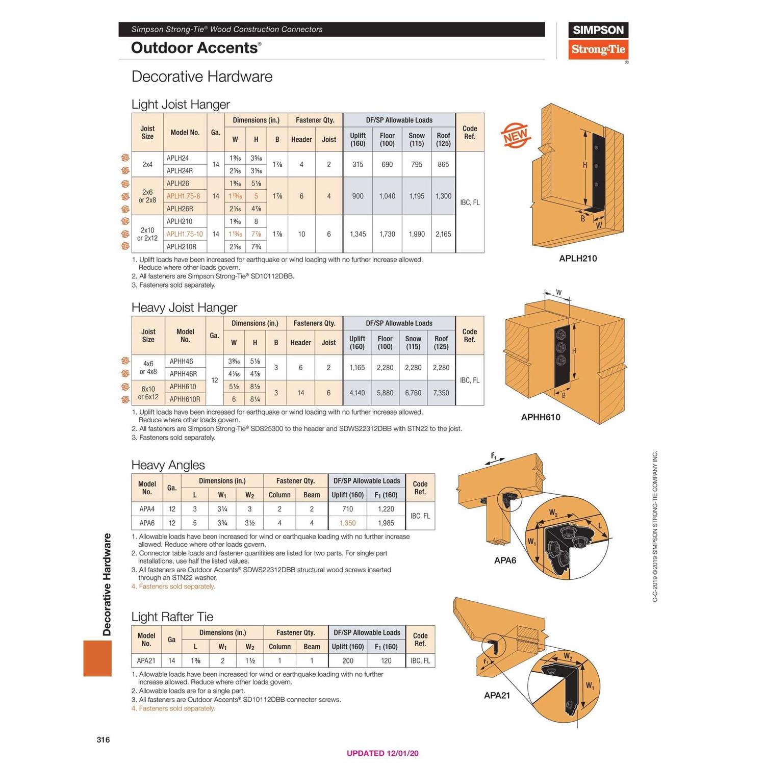 Simpson Outdoor Accents Concealed-Flange Heavy Joist Hangers connect 4x and 6x beams to girders. These joist hangers feature straight edges and are designed to provide a cleaner-looking installation for joist connections. Outdoor Accents Concealed Heavy-duty Joist Hangers are available in a variety of sizes. They are easily installed to the joist with Outdoor Accents connector screw and hex-head washer or to the header with the Strong-Drive SDS Heavy-Duty Connector screw (sold separately). Outdoor Accents Heavy Joist Hangers are perfect for the construction of outdoor projects such as pergolas, patio covers, and other top-supported structures. Simpson heavy-duty joist hangers are made of 12-gauge steel with a black powder coat for superior corrosion resistance.