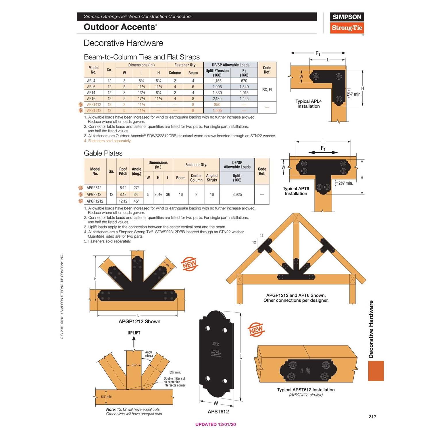 The APST612 flat strap is designed for connecting 6x nominal or rough cut lumber. It’s part of the Strong-Tie outdoor accents collection and provides a nice decorative accent look while being engineered to last and create a secure connection. The black powder coating is applied over a ZMAX finish which makes these suitable for outdoor use.