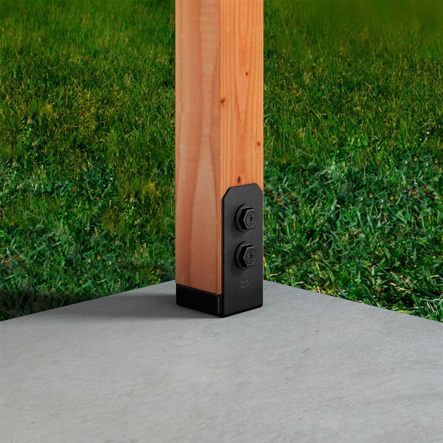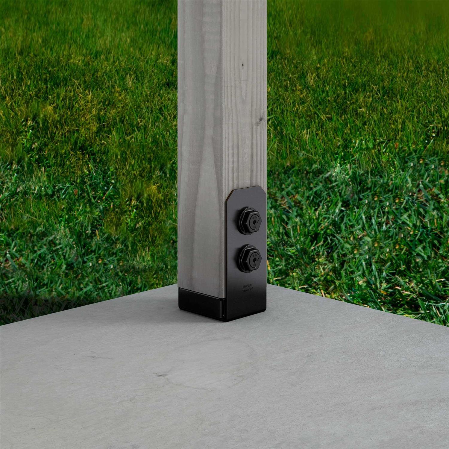 Outdoor Accents post bases secure the post or column to concrete and are perfect for outdoor projects, such as pergolas, patio covers and other top-supported structures. These post bases feature a clean, simple design and provide ZMAX galvanization with black powder-coat for extra corrosion resistance. The post base includes a 1-in standoff from the concrete to help avoid post-end rot from moisture. Part of the Avant Collection.