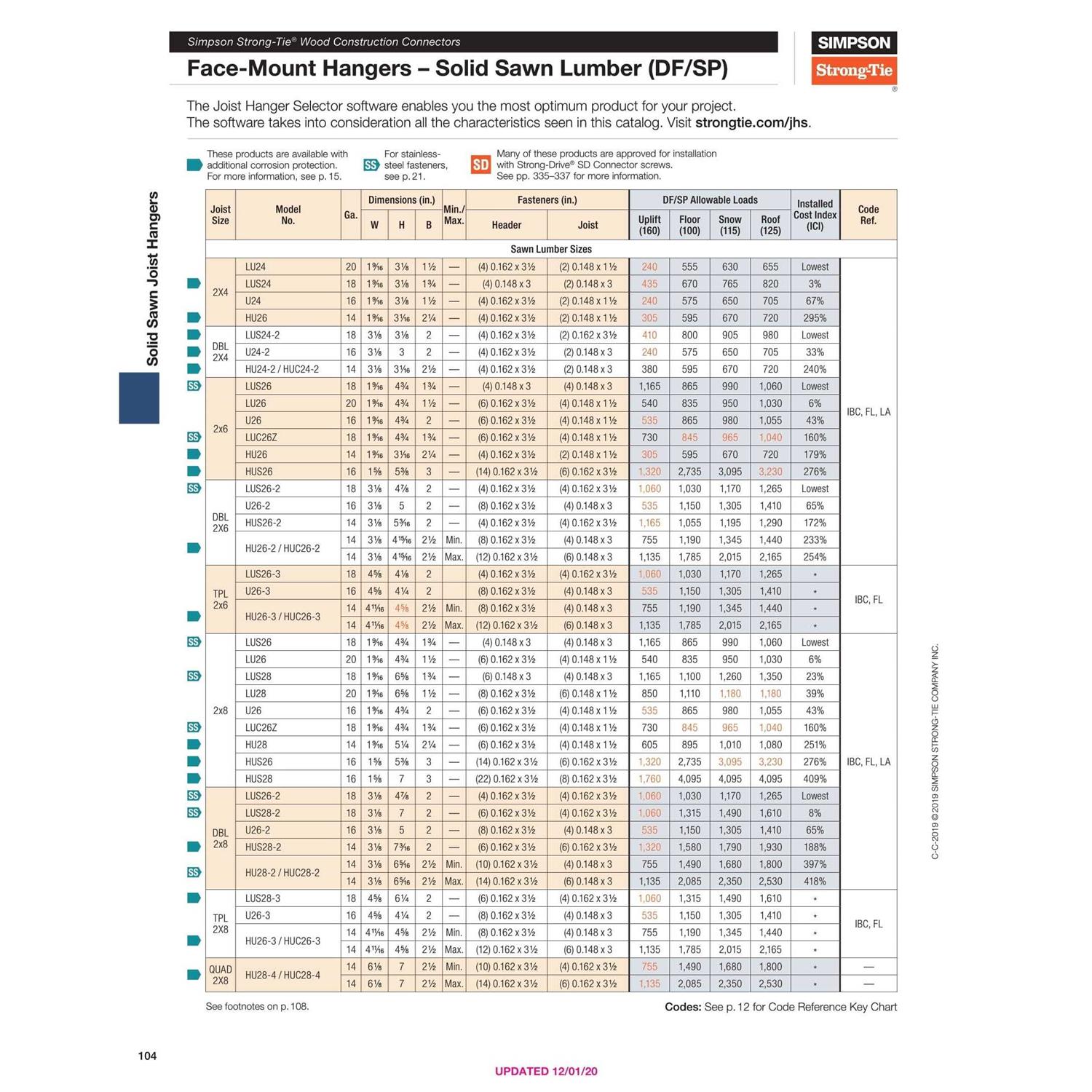The LUS is an easy-to-install, economical hanger designed for common lumber sizes. This widely used hanger features double-shear nailing that distributes the load through two points on each joist nail for greater strength. This allows for fewer nails, faster installation and the use of all common nails for the same connection.