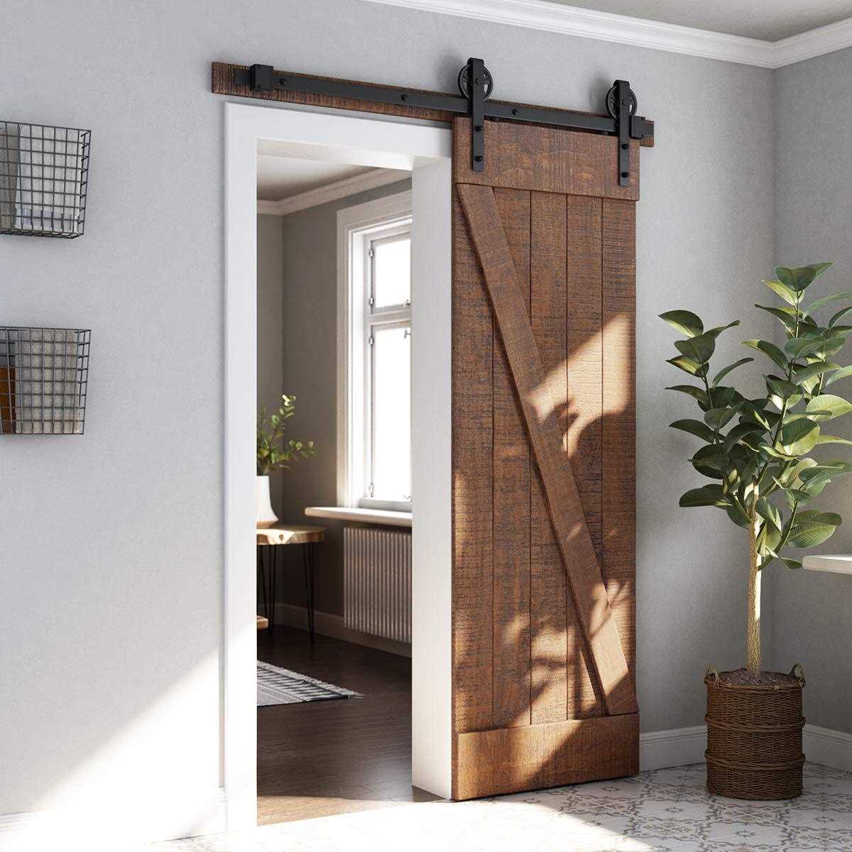 The Best Choice For Your House: This Modern Twist On The Classic Barn Door Not Only Saves Space, It Allows The Ability To Open Up Multiple Rooms Without The Annoyance Of A Swinging Door. Door Weight Capacity: 220 Lb; Fit Door Panel Width: 30″; Fit Door Panel Thickness: 1 3/8 Inch And 1 3/4 Inch. Why Choose Us: With 1/3 Of The Market Price, You Can Get The Same Quality Products Here! Premium Quality Hardware Kit Are Provided Along With A Completely Turnkey Experience. Package Included: A Barn Door Hardware Kit (1x 5.0FT Rail, 4 X Rail Spacers, 2x Rollers, 2x Door Stops, 2x End Caps, 1x Floor Guide, 1 X Hex Key; All Other Necessary Hardware Is Included As You See In The Pictures. For 16 Inch Stud.) *Door Not Included.