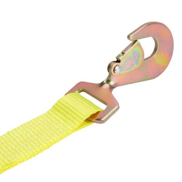 The Tire Bonnet Strap with ratchet is an over the wheel tie down used to stabilize your vehicle safely during transporting. The strong, flexible, yellow webbing secures your vehicle without adding unnecessary stress. The strap offers heavy duty snap hooks providing a reliable connection to any anchor point. Over-the-wheel tie down secures your vehicle during transport Break strength of 10,000 lb. and working load of 3,333 lb. Features heavy-duty snap hooks for connection to anchor points Tire Bonnet with ratchet safely secures your vehicle without adding unnecessary stress Made of strong, flexible, high visibility yellow webbing No need for damaging chains Rust-resistant grommets Provide an essential addition to your car by selecting this SmartStraps Tire Bonnet Tie Down Strap with Ratchet.