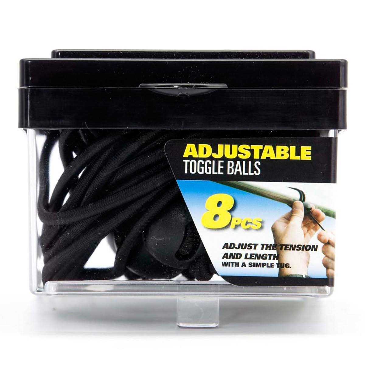 The Adjustable Toggle Balls work great as a bundle strap. It adjusts from 2 inch to 12 inch with a simple tug and can be used to secure, cinch, tighten, and re-tighten. They are excellent for securing tarps, canopies, tents, banners, cords, and hoses.