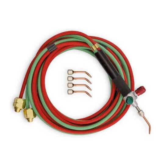 This superbly balanced mini torch has an aluminum body weighing only 1.5 ounces. The thin, extremely flexible hose will give you unequaled maneuverability. Various, multiple tips and accessories enable you to perform many tasks including pinpoint soldering and melting of up to 3 ounces of metal. Color coded hoses eliminate errors during setup.