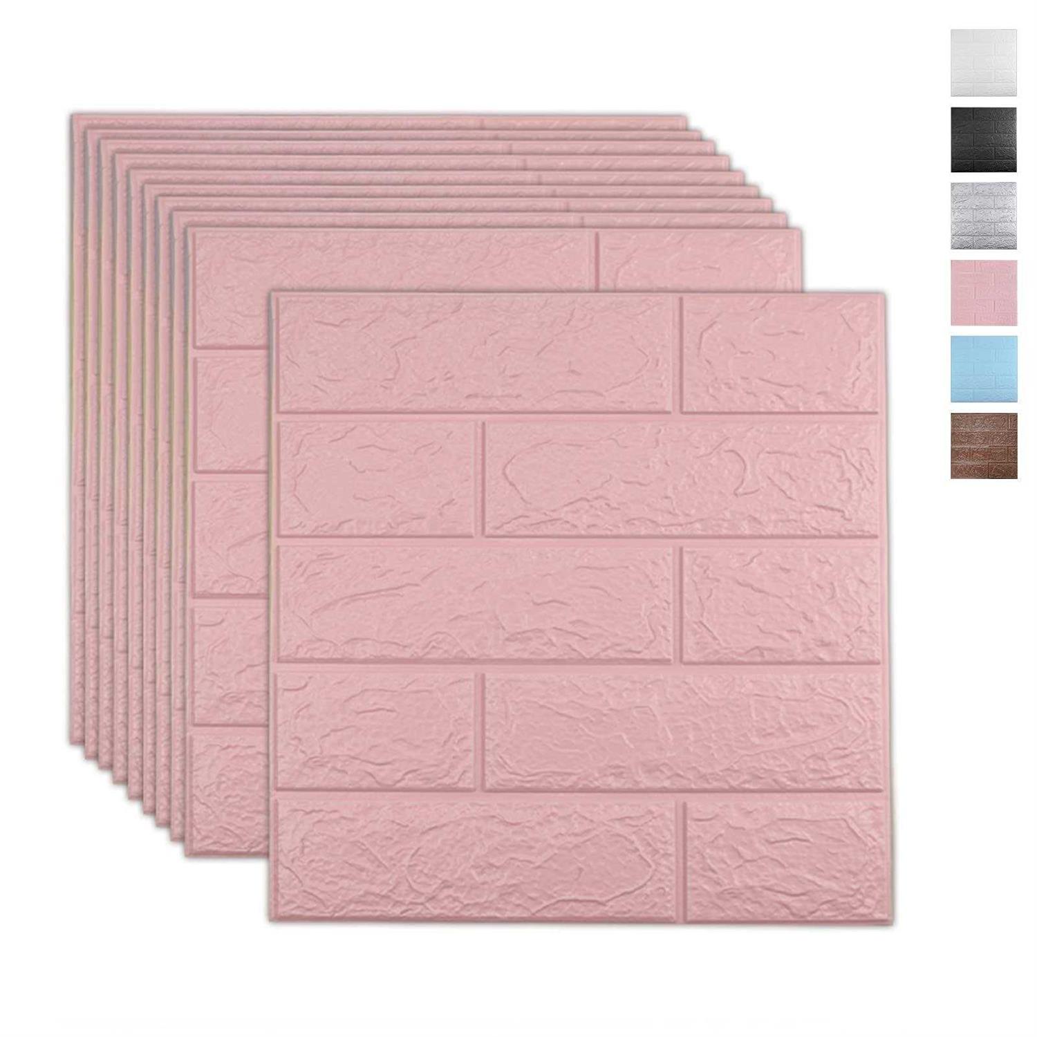 Sodeno 10 Pcs Pink 3D Wall Panels, 14.5 sq.feet Coverage, Printable Wallpaper Sticker with Self-Adhesive Waterproof Brick PE Foam Wall Panels Peel