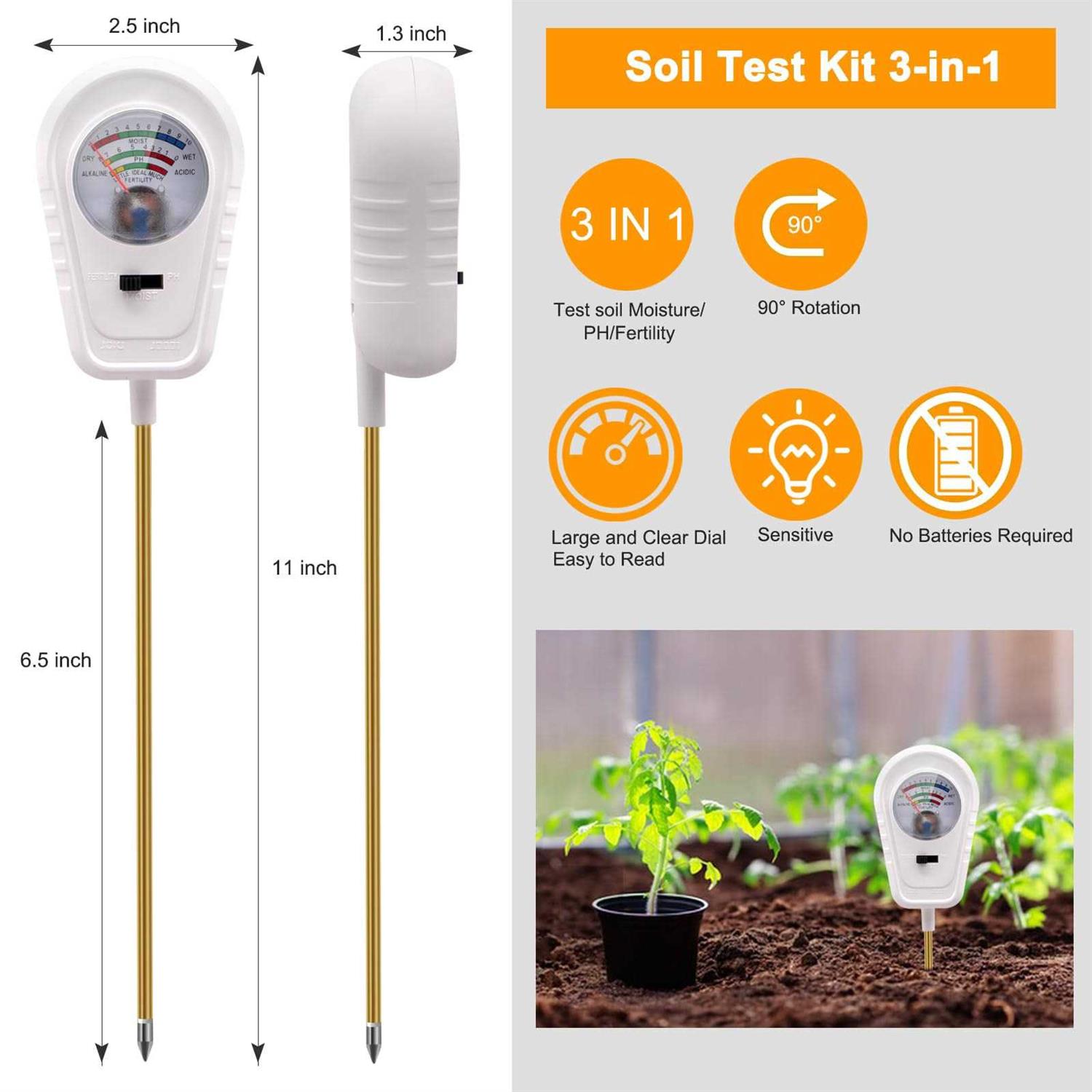 Soil Test Kit 3-in-1, Soil Moisture Meter, Fertility Soil Tester, Soil Ph Meter, Soil Tester for Garden, Lawn, Farm, Indoor & Outdoor Use (No