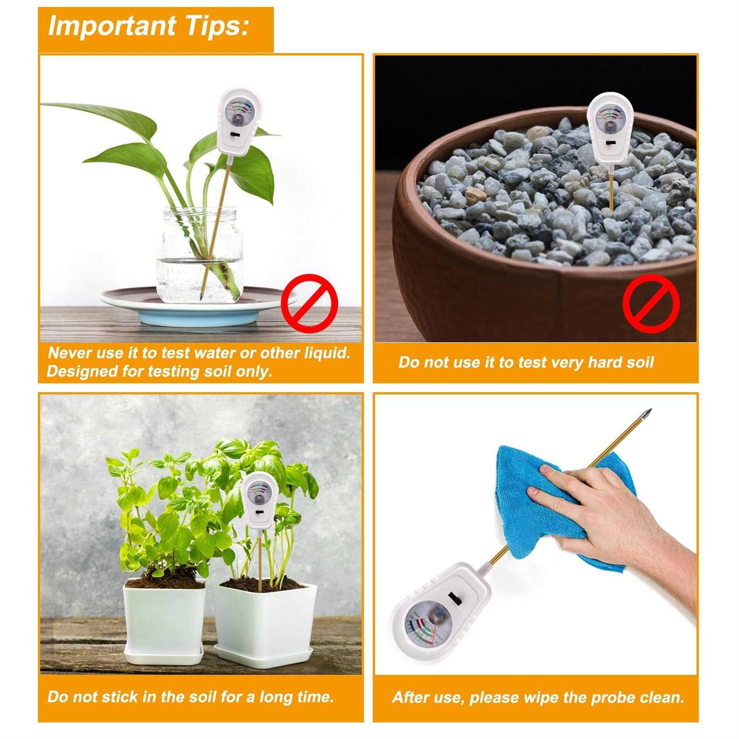 Soil Meters by BANDQ. Important tips: 1. Do not use it to test very hard soil. 2. Never use it to test water or other liquid. Designed for testing soil only. 3. After use, please wipe the probe clean.