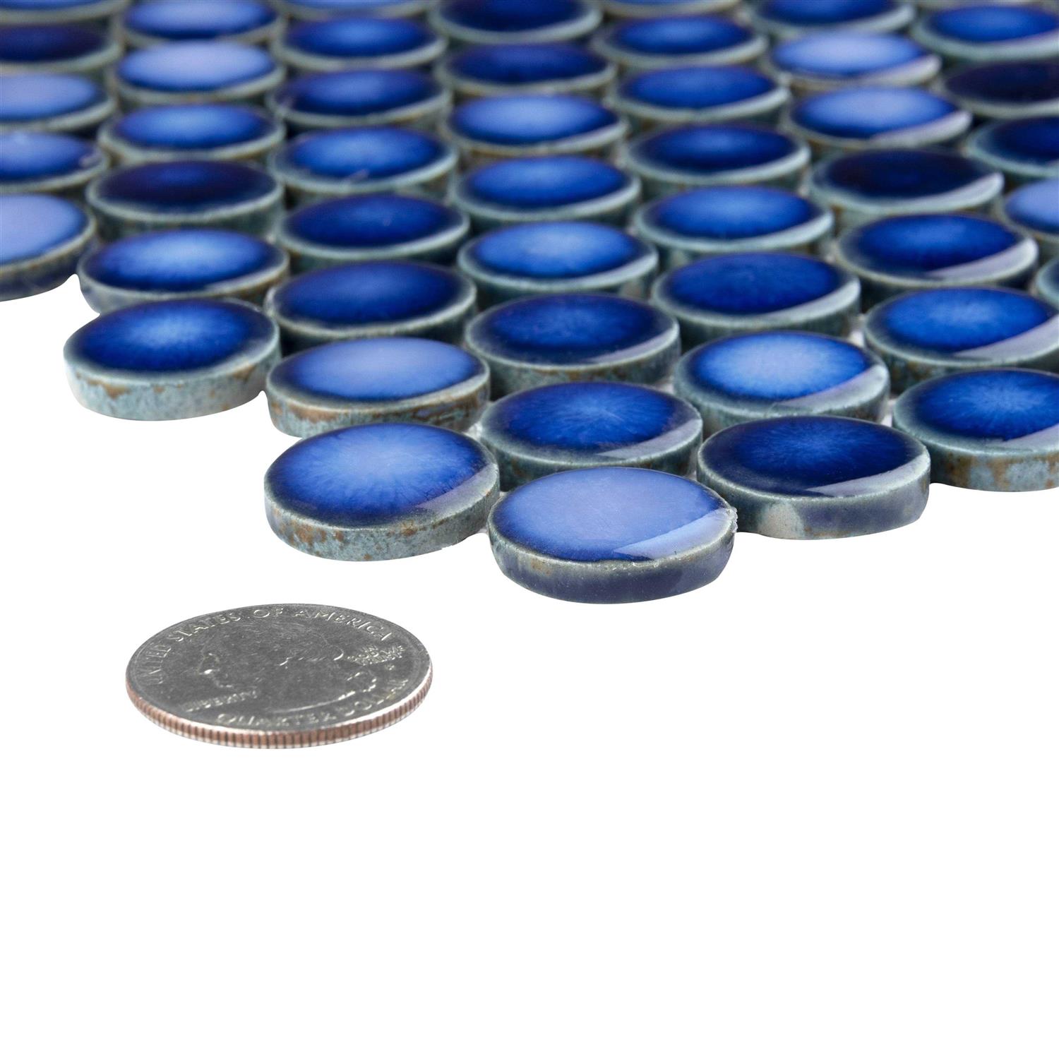 SomerTile Fkompr44 Penny Porcelain Floor and Wall Tile 12 inch x 12.625 inch Glossy Sapphire Blue