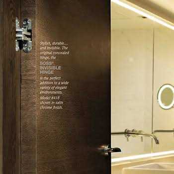 SOSS Invisible Hinge model #218IC is ideally suited for all types of doors. The SOSS Invisible Spring Closer gives you a spring closer that is totally invisible from either side when the door is closed. The closure rate is completely adjustable with an allen wrench after installation, and does not require removal of the spring closer. Installation can be either inside the door itself or inside the door jamb. SOSS Invisible Hinges open a full 180 and are a single action hinge.