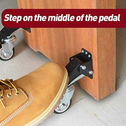 IMPROVED VERSION – The workbench caster kit uses thick steel, strong screws, 6-holes-plate, better wheels and double bearings. The orange rubber sleeve design with a visually striking effect which plays a buffer effect when bumping. SIMPLIFIED INSTALLATION – The retractable casters works simply. Just by pushing down on the pedals on to raise the workbench off the floor. Once elevated, you can move your bench, table or machine as desired. Then lift up on the pedals to disengage. The workbench, table, cabinet, stand or machine sits firmly on the floor at its original working height. 3 INCH WHEEL & DURABLE CONSTRUCTION – The heavy duty workbench caster kit is constructed with durable solid steel and urethane wheels, which is 3 inch diameter. It smoothly moves 360 degree. The wear-resistant urethane wheels are more steady for heavy duty benches. Suitable for extensive daily uses. STRONG FOOT PEDAL – Each lift pedal of the heavy duty retractable caster is rib-textured to provide extra grip when foot pressure is applied. All the four urethane casters together can provide you a total weight capacity of 400kgs. The casters will work on workbenches, stands, tables, cabinets and lightweight machinery with flat bases. Package Include – The workbench caster set contains 4 workbench caster assemblies, and all the necessary mounting hardware and instructions.