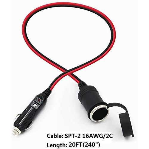 12 Volt Cigarette Lighter Socket Extension Cord; Cable Spec: SPT-2 16AWG/2C, Length: 20FT( 240 IN).