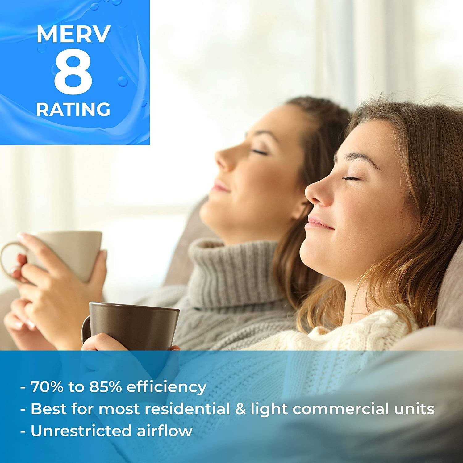 Find a value pack of high quality replacement furnace filters from SpiroPure. SpiroPure pleated AC & Furnace filters are made in the USA and are the perfect choice for most standard residential and light commercial air conditioner and furnace units. MERV 8 rated air filters are the most commonly chosen replacement filter in the home. This is because the 70% to 85% efficiency of size 3 to 10 micron particles that comes with a MERV 8 filter is perfect for removing airborne contaminants without impeding the airflow in your HVAC system. A dirty filter restricts airflow, which can put too much strain on the system. As a result, there can be motor burnout and an overheated system. The leading cause for HVAC system failure is a dirty air filter.