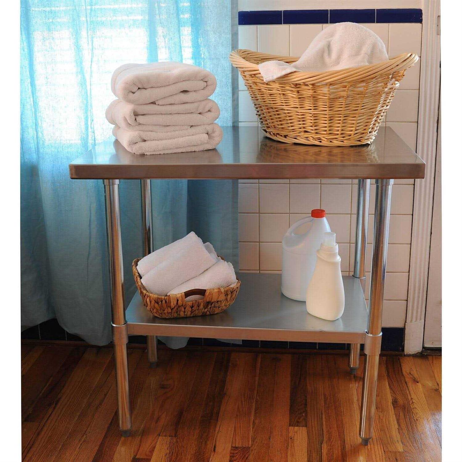 The Sportsman Series Stainless Steel Work Table is the perfect addition to your kitchen, garage, or basement. A smooth 24 x 72 in.work surface is ideal for preparing and processing sauces, meats and vegetable, and is large enough to complete most arts and crafts projects. The 35 in.H is ideal for cooking and working without making your back ache. Adjustable galvanized metal shelf fits under the table and provides additional storage space for supplies. Curved edges help prevent injuries from accidental bumping and injury. Attractive contemporary design fits into any decor. Max weight capacity 330 lbs.