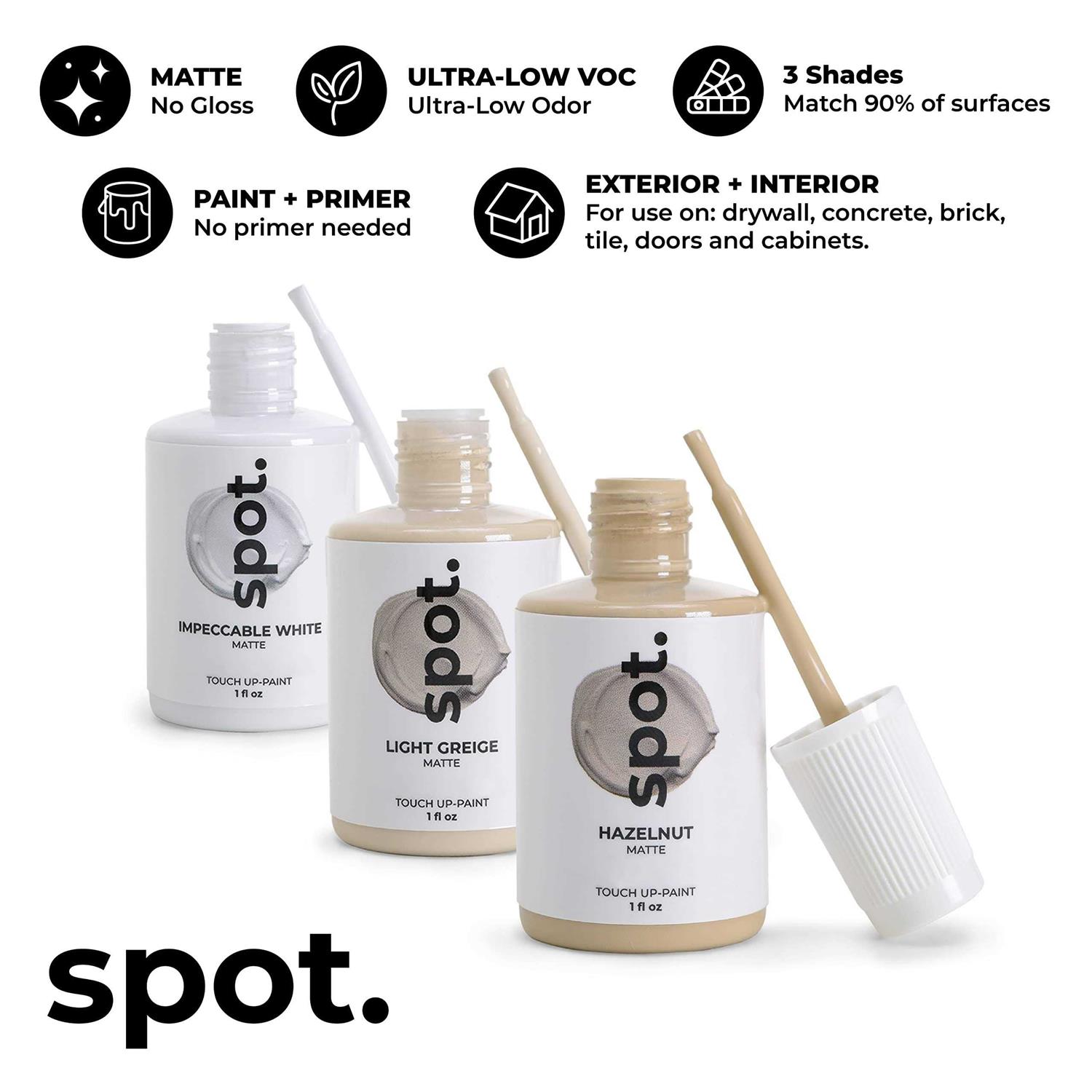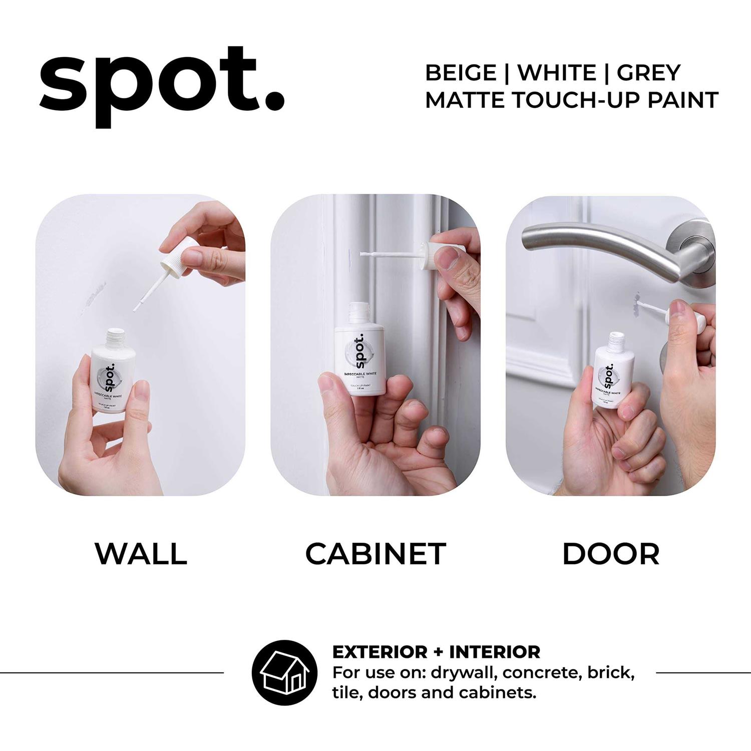 Spot. Touch Up-Paint, Matte Finish, for Cabinets, Walls, Windows, Doors, and Furniture, 3 Color Kit Matches 90% of Surfaces, White 3 Pack