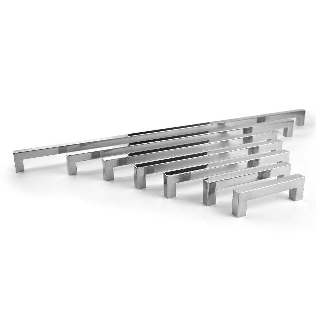 Our square bar pulls, named for their square cross-section, will add sophistication to your cabinet drawers and doors. They are modern and simple, durable in construction, and easy to install. Our pulls are made from hollow stainless steel, which will resist rust and corrosion in moist environments like kitchens and bathrooms. The pulls are lightweight yet strong. Install once and forever.