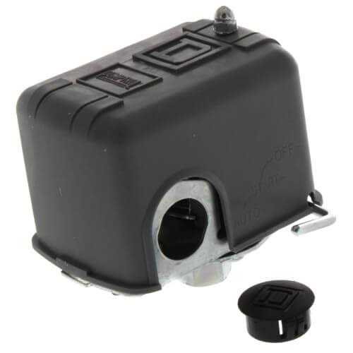 Square D pumptrol well tank pressure switches are the industry standard for household well installations. They are easy to install have adjustable cut-in and cut-out settings and can control both submersible pumps and jet pumps. Factory set cut-in pressure: 30 psi. Factory set cut-out pressure: 50 psi. Pressure connection: 1/4″ FNPT. Low pressure cut-off turns pump off at approximately 10 psi below cut-in. Maximum voltage rating: 575VAC. Amps: 10A. Maximum allowable pressure: 220 psig. Actuator type: diaphragm. Diaphragm: nitrile (Buna N). UL listed and CSA certified. Dimensions: 2.78″ x 3.76″ x 2.8″.