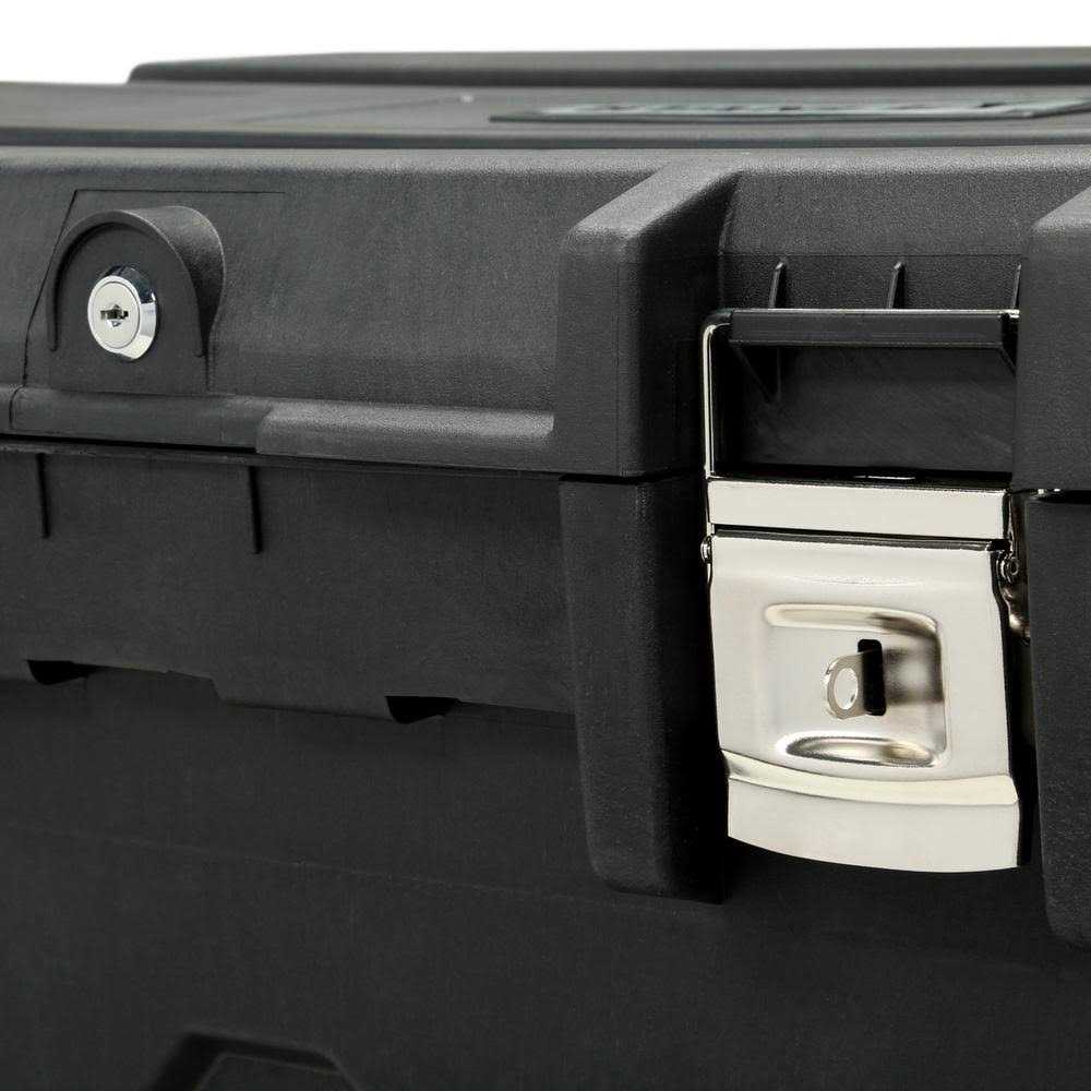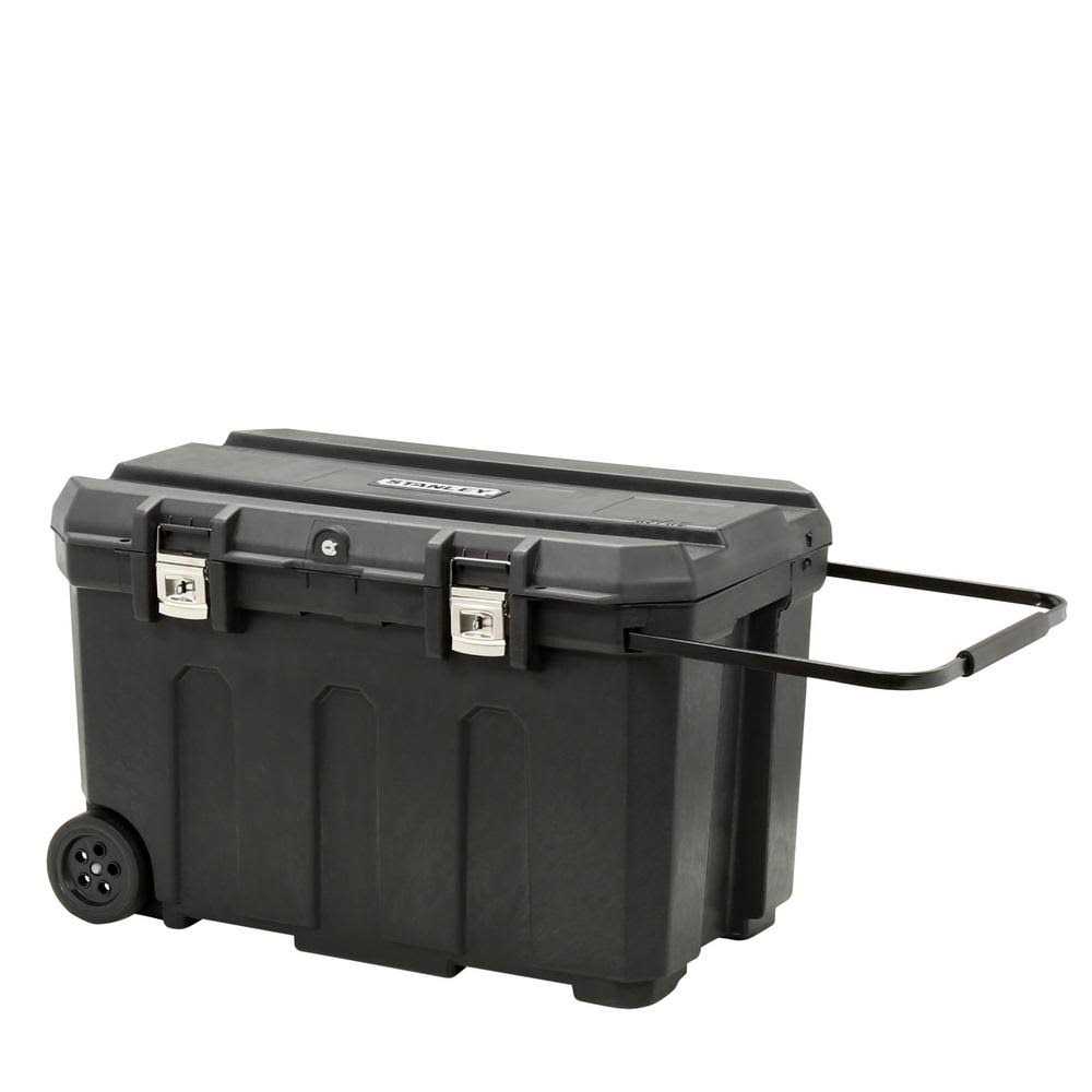 With a 50 gallon capacity, the Mobile Rolling Tool Chest from STANLEY has a variety of storage applications for professional or home use. This lockable roller tool chest is made of high density structural foam and has a soft grip handle and rubber coated wheels that allow for easy maneuverability. Overall Width 22 3/16 in, Overall Depth 37 1/2 in, Overall Height 23 1/4 in.