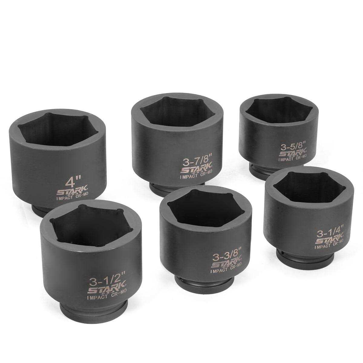 Stark USA 1″ Drive Jumbo Shallow Impact Socket Set SAE Sockets 6-Piece 3-1/4″ w/Case