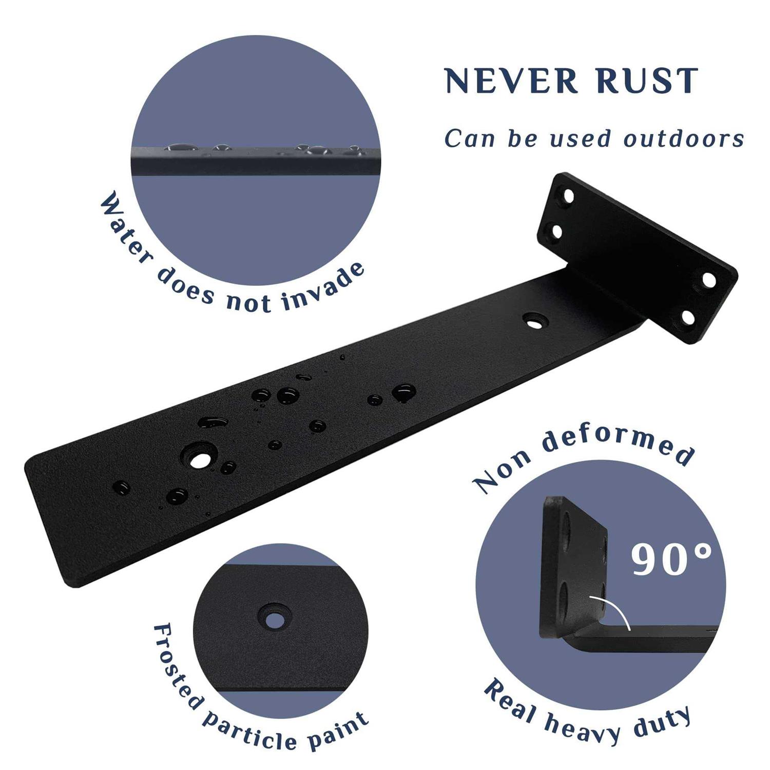 REAL HIDDEN BRACKETS: These black shelf brackets have no lips and can be truly hidden. The base can be blocked by the plank, creating an amazing floating illusion. Compared with other floating shelf brackets, this bracket is easier to install REAL HEAVY DUTY: This kind of metal bracket is thicker and heavier, each one has a solid weight and density. Weight capacity of 150 lbs per pair. The surface of the frosted particles has a richer texture, has anti-scratch and anti-rust functions, and can be used for life. HEAVY DUTY SCREWS: The package includes 6 supports, 24 long screws, 12 short screws and 24 hard-wall anchors. The countersunk screw hole guarantees that the nut stays flush with the bracket without being obtrusive. PERFECT DIY PROJECT: Improve item storage efficiency. Make the most of your family space. Including but not limited to kitchen, bathroom, bedroom, office, warehouse. You can even use it as a cat climbing wall support.