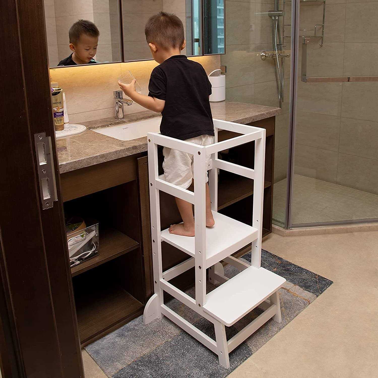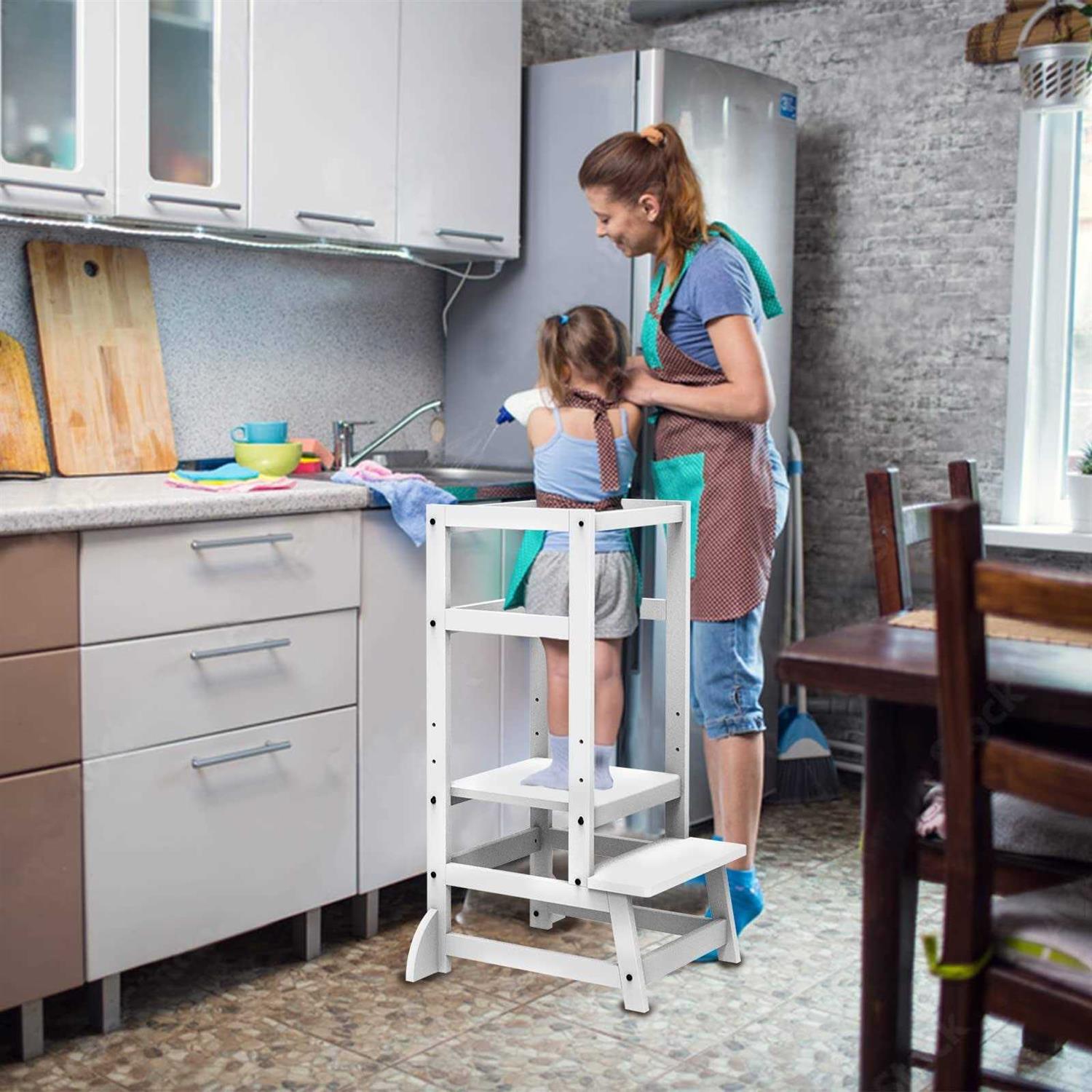 Kids step stool: Encourage childhood independence and family togetherness,they can help cook and prepare meals.You could also put toddler step stool in washing room so kids can brush teeth by themselves. Grows With Your Child: Adjust the platform to keep your step stool at the perfect height for your growing child. Solid Pine Structure:Step stool for toddler is crafted from a combination of solid hardwood that prevents scratches and scuff marks. Safely supports 150 lbs. Widely Used: Step stool for kids is suitable for various places in home, such as kitchens, sinks, toilets, cabinets, writing desks, bookcases, dining tables and so on. Baby can do a lot of things by himself to build confidence and independence. If you run into any problems or questions, don’t hesitate to let our team know. p strong Kitchen Step Stool /strong – br – Are you still worried that your baby will fall when stepping on the chair? Are you still worried that you cannot take care of your baby while preparing food in the kitchen? – br – Toddler kitchen stool helper is your best choice. It uses high-quality environmentally friendly materials, strong and durable, non-slip. – br – The height of the three gears can be adjusted, suitable for children of different ages and heights. Kids like to spend happy time with mom and dad’s kitchen and increase their cooking space. /p