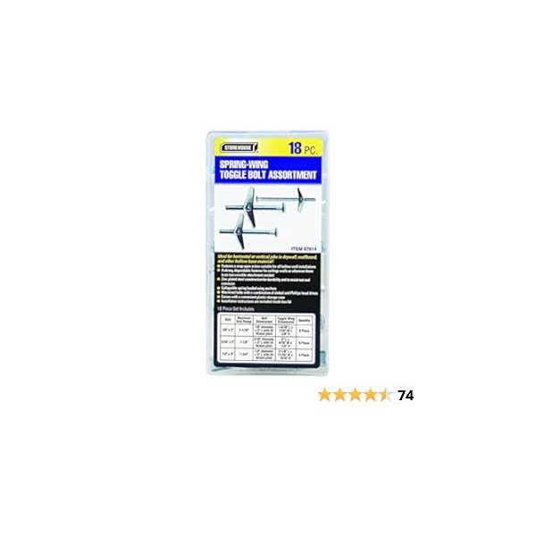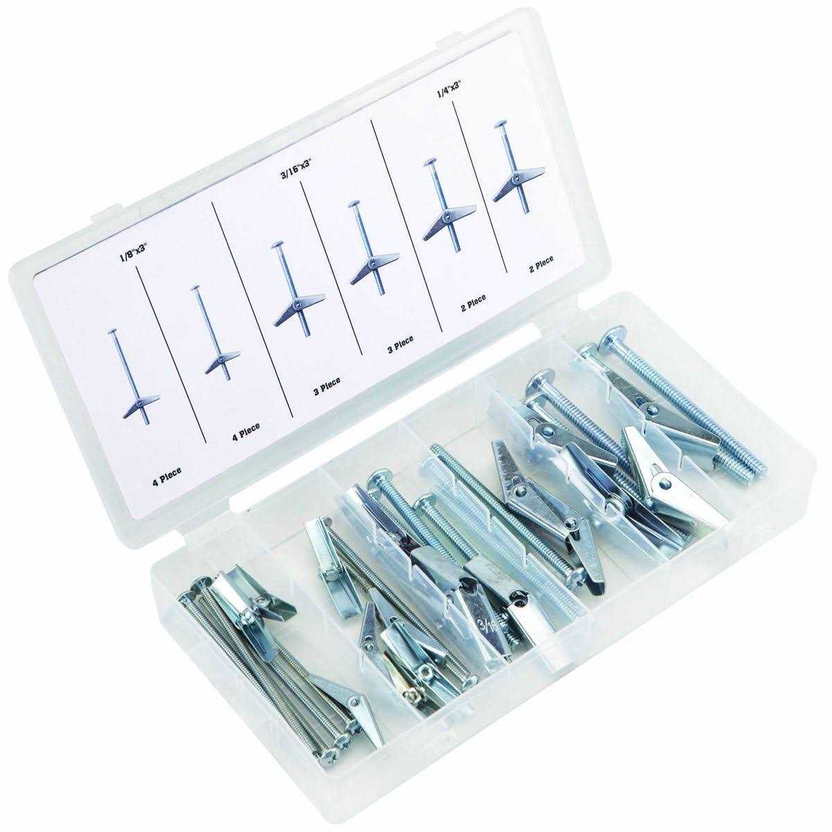 Securely place paintings, picture frames, heavy mirrors and more onto hollow base materials with these toggle bolts the rust-resistant zinc plating on the toggle bolts help resist rust and maintain maximum durability. This assortment is full of strong, dependable fasteners for ceiling walls or wherever there is an inaccessible attachment needed. The toggle bolts come organized in a convenient plastic storage case for easy portability and organization.