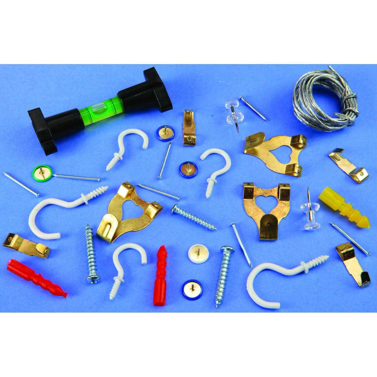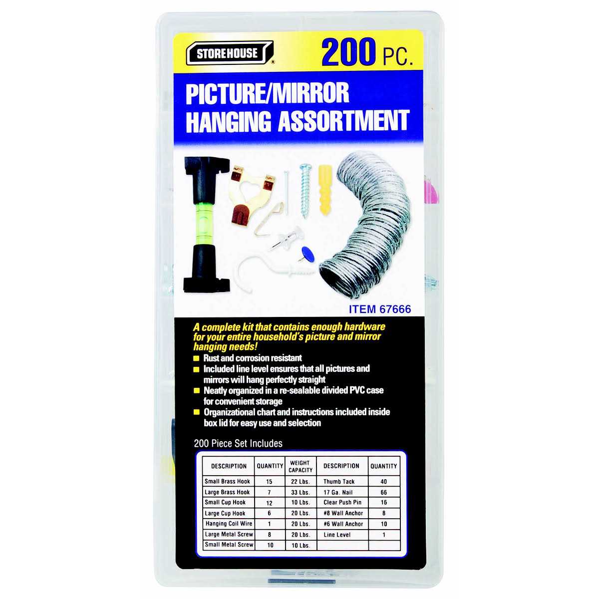 This complete kit contains enough picture hangers and mirror hangers for the needs of an entire household! The set of picture and mirror hangers comes with a line level to ensure your frames are perfectly straight each and every time.