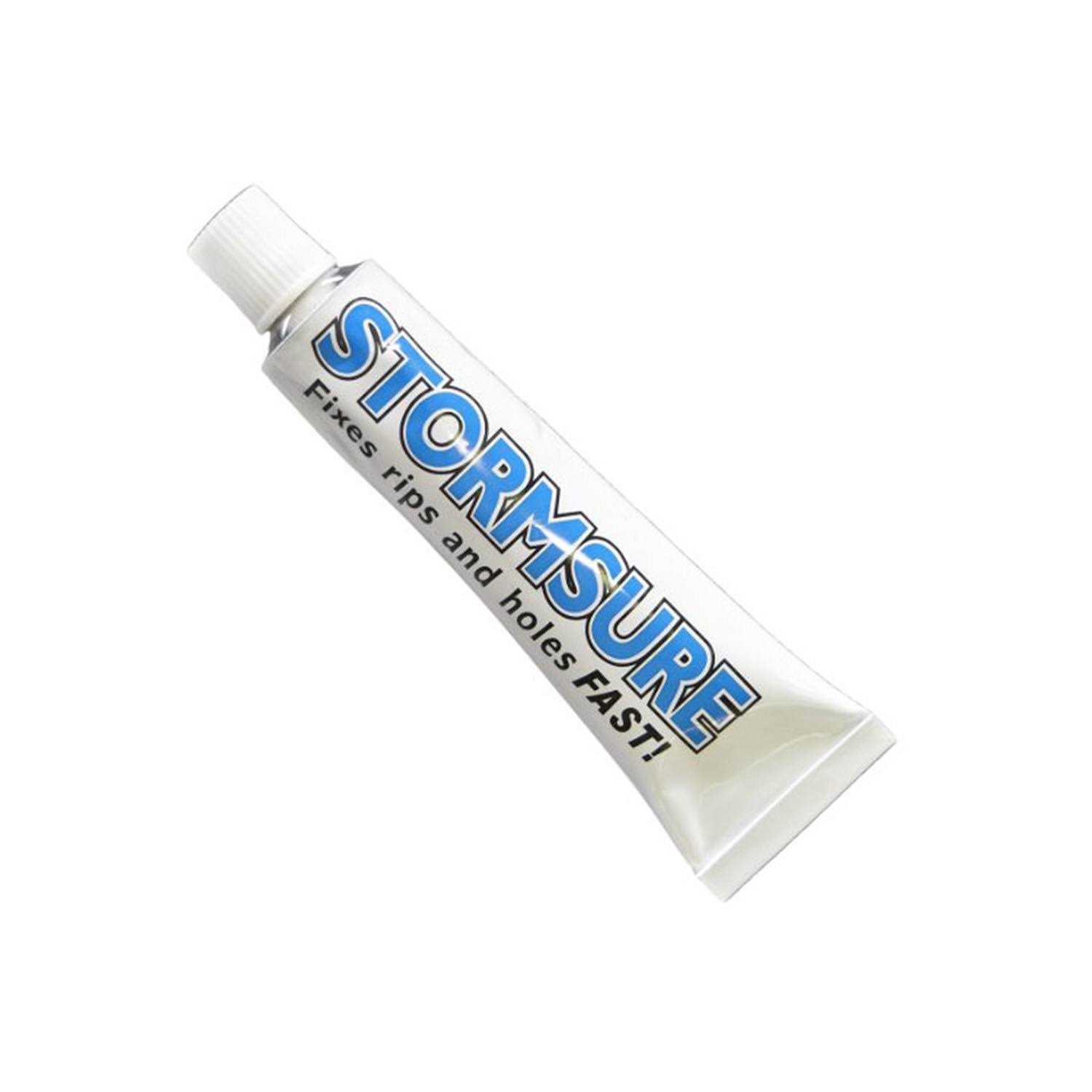 Stormsure 15g Clear Flexible Repair AdhesiveStormsure Flexible Repair Adhesive, is a waterproof universal glue. It is highly versatile in all areas but is particularly useful in repairs to outdoor-wear and water sports equipment due to being flexible and extremely tough when cured. Stormsure Flexible Repair Adhesive bonds to virtually all surfaces including neoprene, rubber, leather, PVC, polyurethane, breathable and coated fabrics, wood, metal and more. It is ideal for repairing cracks in wellington boots, loose soles, leaks in waders, rips in wetsuits, damaged horse rugs, holes in tents and much more. An essential piece of kit for hikers, fishermen, equestrians, hunters, divers, campers, surfers, sailors etc! DIRECTIONS Using at room temperature.Clean the damaged area (sand the surface for best adhesion). Apply a generous amount of Stormsure Flexible Repair Adhesive to the damaged area, leaving at least a 5mm excess around it.Leave flat and allow to cure for 10-12 hours. TIPS Mix with Stormcure Accelerator to reduce cure time to approximately 1 hour. Ensure there is no air left in the tube before replacing cap. Store partly used tubes in a freezer.