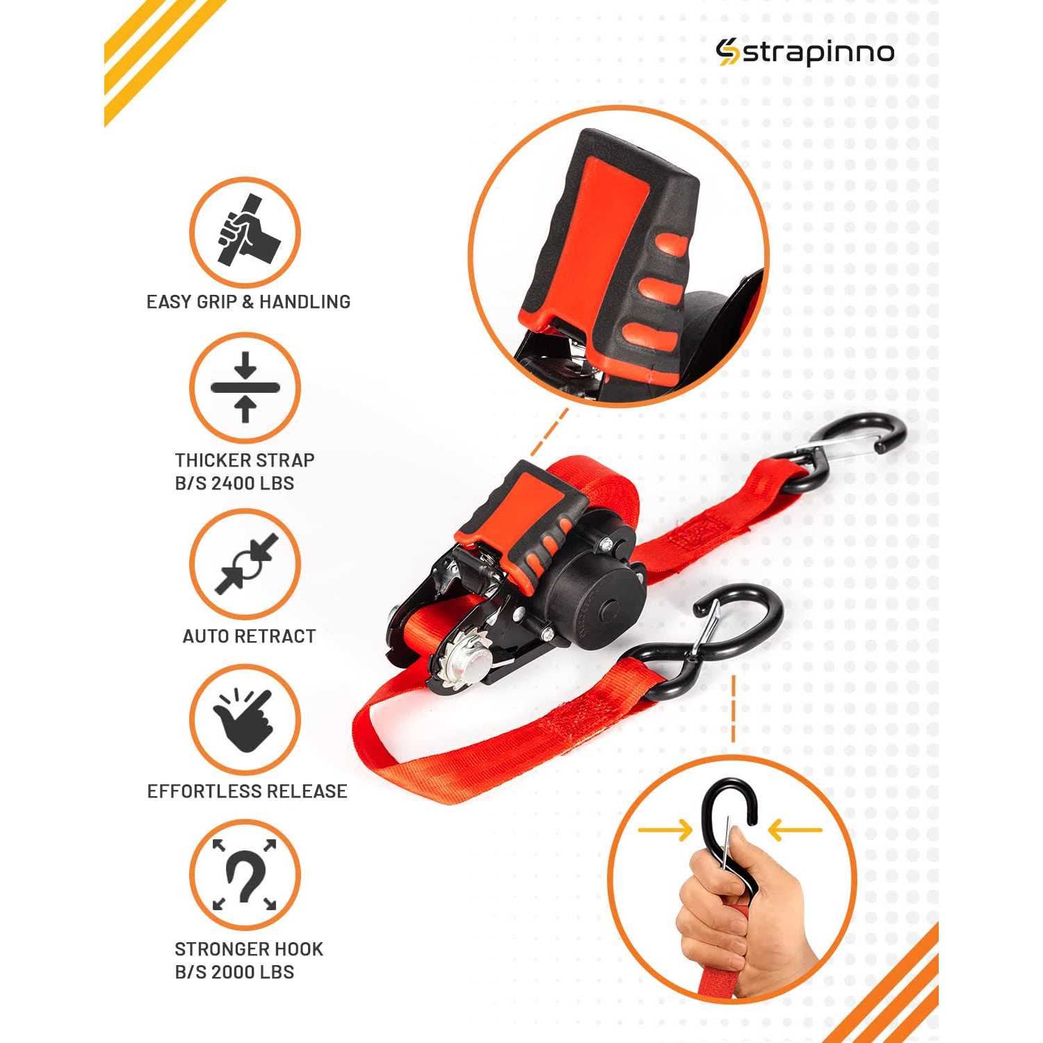 Strapinno Retractable Ratchet Straps 1 in x Tie downs