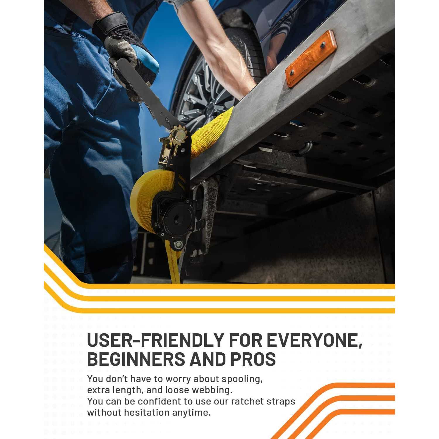 Strapinno Retractable Ratchet Tie-Down Strap Heavy-Duty Strap with Double J Hooks