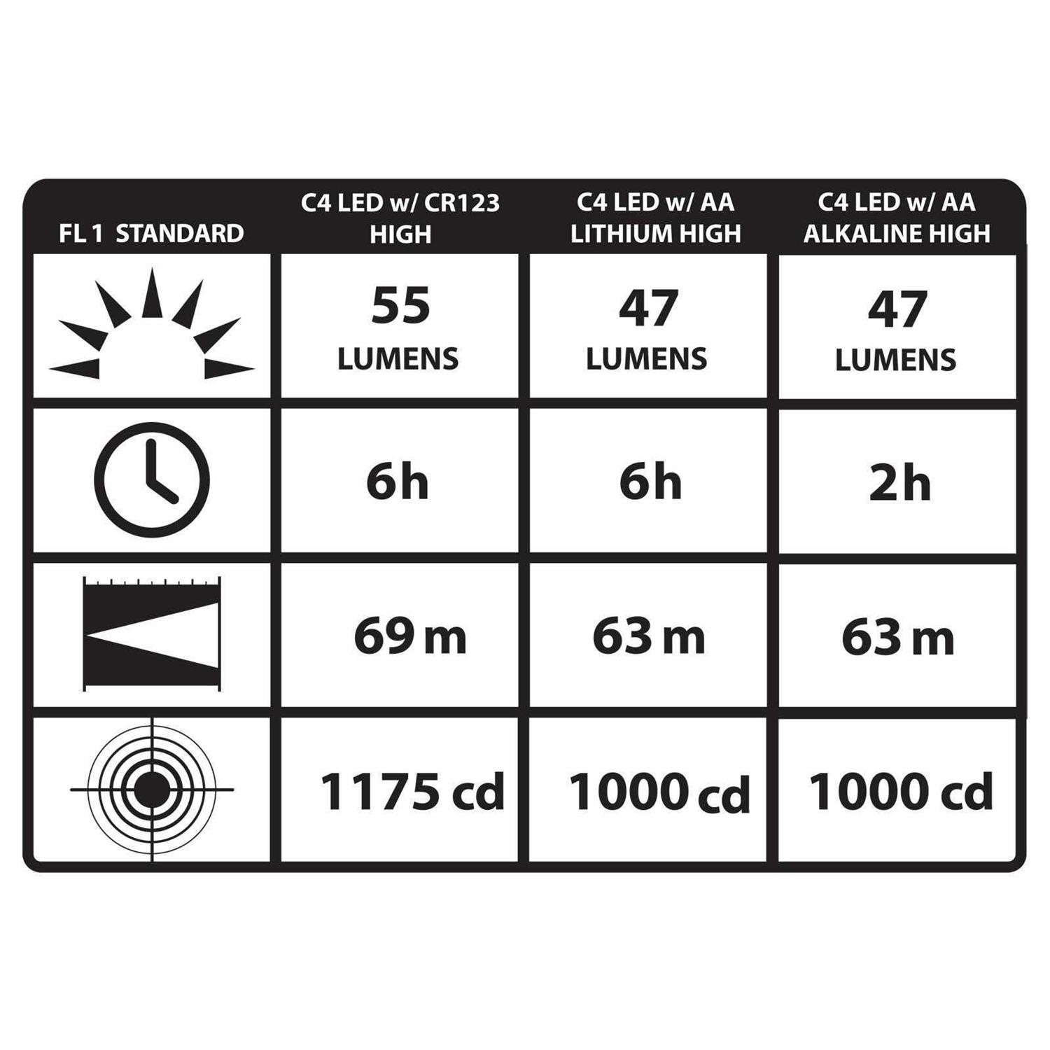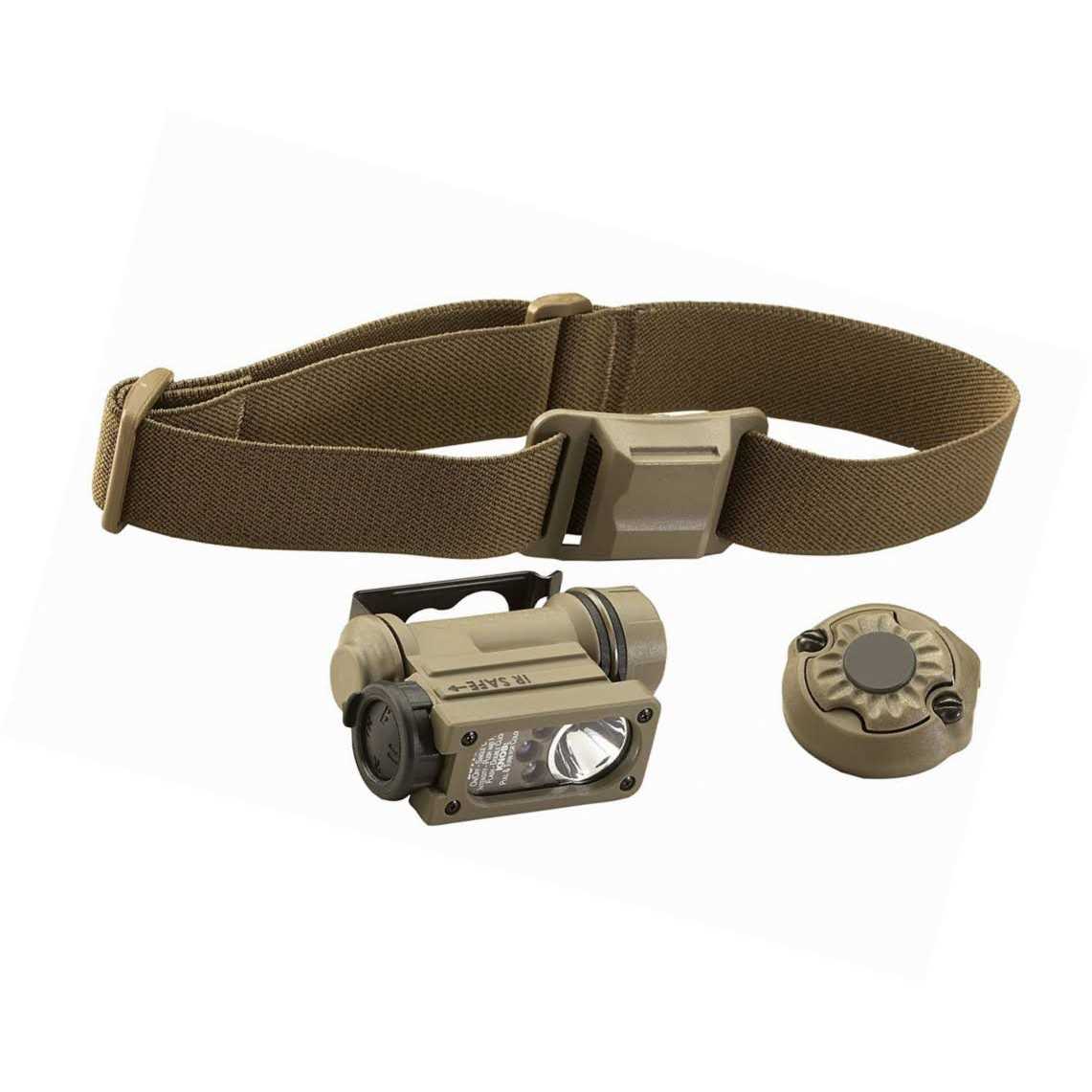 Compact, versatile and built like a tank, the Sidewinder Compact II Tactical Military Flashlight from Streamlight is an essential addition to every tactical load out. Four separate LED light sources provide the versatile lighting needed to handle any situation. A powerful 55-lumen C4 white light for general illumination purposes, red for preserving night vision, infrared (IR) for use with night optics or night vision goggles and blue for signaling purposes. Each light source has four brightness settings as well as a strobe mode that balances the perfect amount of illumination in any environment with battery conservation. A rubber rotary selector knob and push button allow operators to easily cycle through each setting and LED color with or without gloved hands. Designed for tactical use, the light can be securely fastened to most military helmets, elastic headbands and MOLLE-compatible platforms. Powered by either a CR123A or standard AA alkaline/lithium battery, the Sidewinder ensures no one is ever left in the dark.