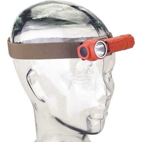 The removable clip and ninety-degree design of the orange Streamlight PolyTac 90 puts light where you need it. You can clip it to a shirt pocket, or hang it using the built-in carabiner, and direct light to where you are working. The C4 LED puts out up to 170 lumens on high, or 17 on low. Switching is simple, you can choose from high or low outputs as well as strobe for signaling purposes. IPX7 waterproofing means it is submersible to 3.3′ for a half hour, and is rated to survive a fall from up to 3.3′.