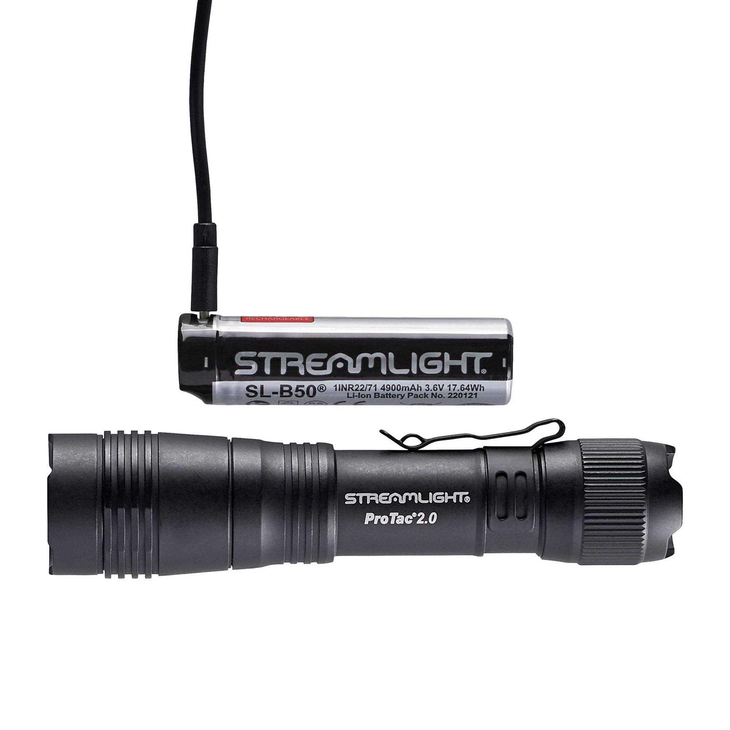 High performance light in the palm of your hand. The rechargeable ProTac 2.0 produces 2,000 lumens without sacrificing run time. Powered by the new SL-B50 battery pack that charges inside or outside of the light using a USB-C cord. 2,000 lumens on high, 262 meter beam distance. Multi-function, push-button tail switch for momentary/constant on operation. High/Medium/Low/Strobe modes and TEN-TAP programming to choose your preferred operating mode. Durable aluminum construction, IP67 dust tight, waterproof and impact-resistant to 2m.