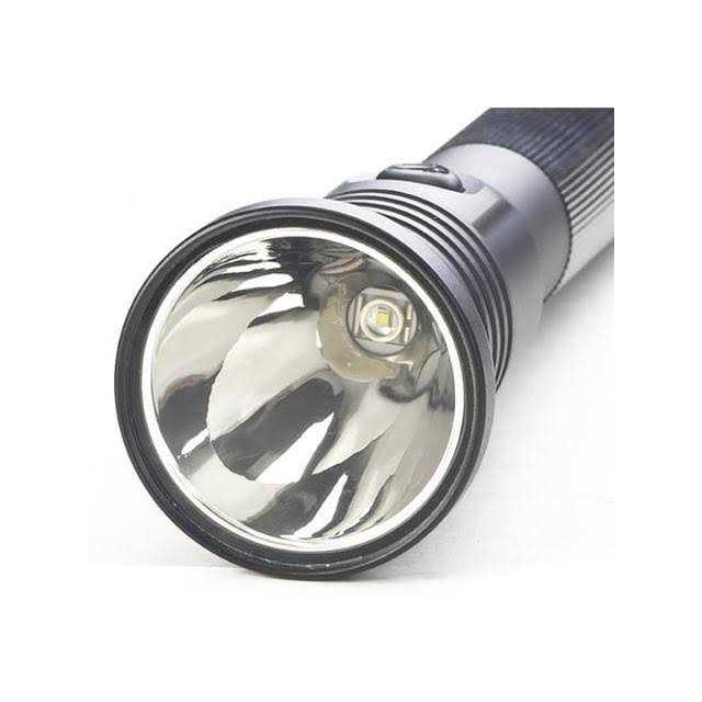 Three powerful output levels, an emergency strobe, and a sturdy aluminum housing with a comfortable rubberized grip make the Streamlight Stinger HPL Rechargeable LED Flashlight a solid choice for law enforcement, industrial, and recreational use in demanding circumstances. Its C4 LED delivers 200, 400, and 800 lumens, with runtimes of 5, 2.5, and 1.5 hours, respectively, on a full charge. The head-mounted push-button switch controls on/off, cycles through the settings, and activates the strobe to disorient an attacker or signal for help. The Stinger HPL’s 6000 series machined aluminum housing has a rubberized handle for a secure, comfortable grip. The scratch-resistant polycarbonate lens is O-ring sealed, and the light carries an IPX4 water-resistance rating and an impact-resistance rating of 9.8′. The charger is sold separately.