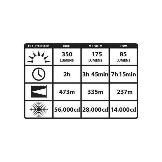 - Three mode operation (Low/Med/High) with up to 350 lumens