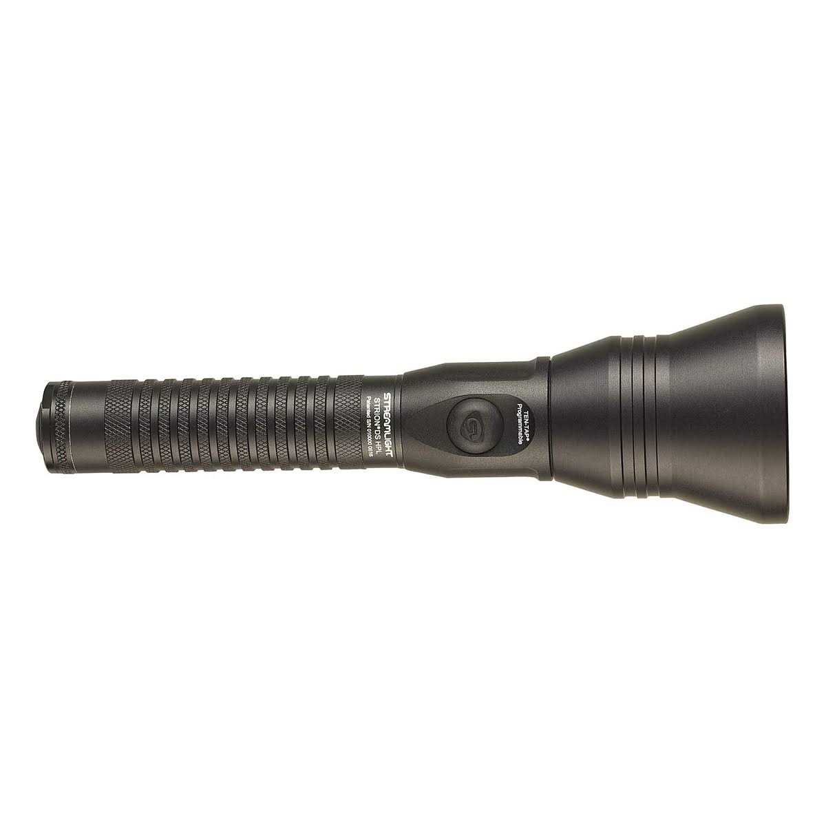 The Streamlight Strion DS HL flashlight now comes equipped with Dual Switch Technology, allowing you to select between lighting modes using the head or tail switches. It features three power settings and a strobe mode for dazzling targets, with three programs accessible from the TEN-TAP programmable switch that allow you to choose the set of available modes (high/medium/low/strobe, high/medium/low, high only). The flashlight is made from rugged anodized aircraft-grade aluminum, with a high-temperature glass lens and an anti-roll head design that keeps it in place when set down. It is tested for impact resistance at two meters, as well as IPX4 water-resistant for all weather use. The light comes with a clamp-style charger with charge indicator LEDs and digital technology that prevents overcharging. Its Piggyback design allows you to simultaneously recharge a spare battery.