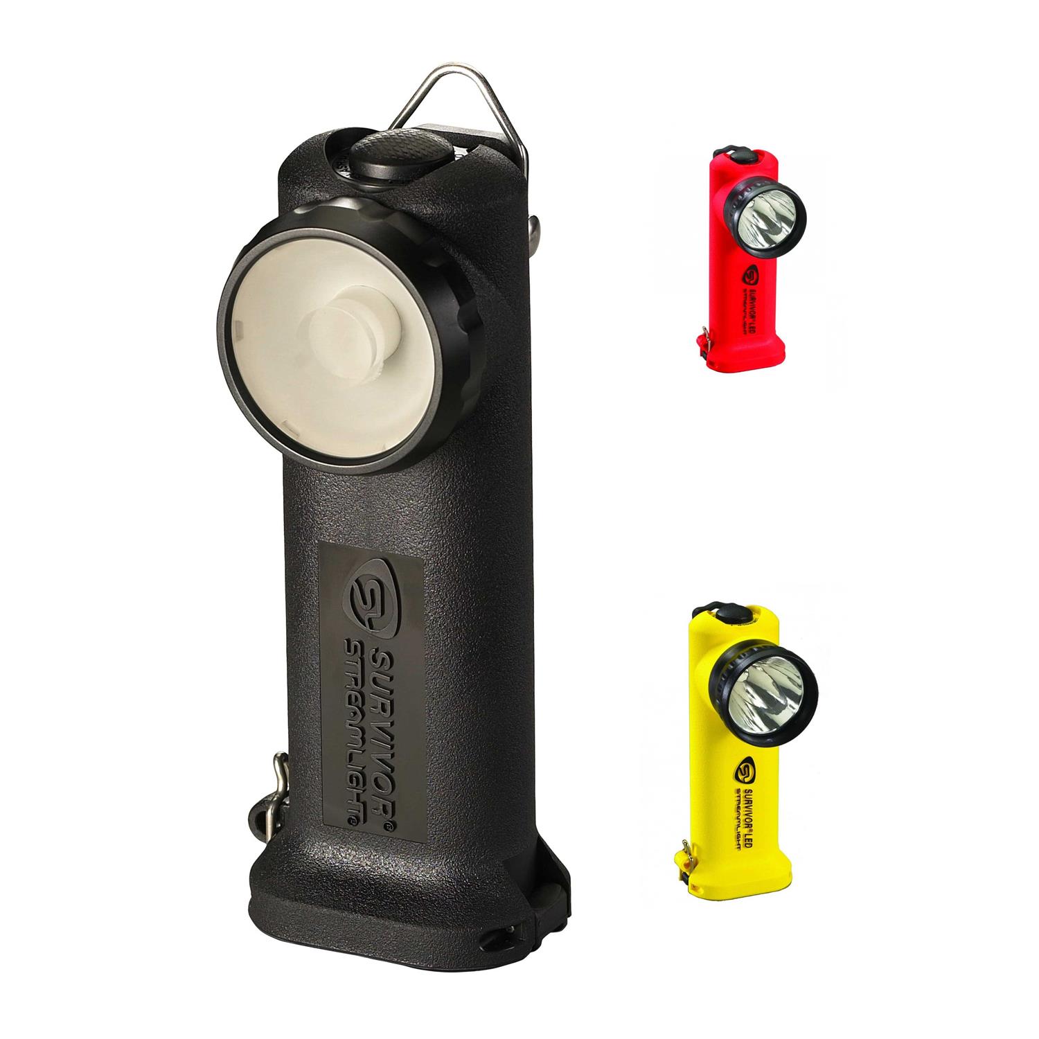 The Streamlight Survivor LED (Alkaline Model) is a lightweight, hand-held light with right angle head designed for use in hazardous locations. The light offers microprocessor controlled high and low lighting modes and emergency flash mode. It is the Brightest, Right-Angle LED Flashlight in the World. The Luxeon LED will never break or burn out, it’ll never have to be replaced. This ultra-bright, 3-watt Luxeon LED has a 50,000 hour life with 65 lumens. There is no need for spare bulb. The deep-dish, parabolic beam generator creates a long-range (500 feet), focused beam, and ample side lighting for multi-use applications. It’s weatherproof, microprocessor controlled, push button switch is raised to make it easy to use with gloves. The three position switch (high, low, and locator strobe) is a raised push button switch recessed in a polymer housing for protection. The Streamlight Survivor LED will run up to three hours on high beam and up to six hours on low beam. It is powered by four AA Alkaline batteries.