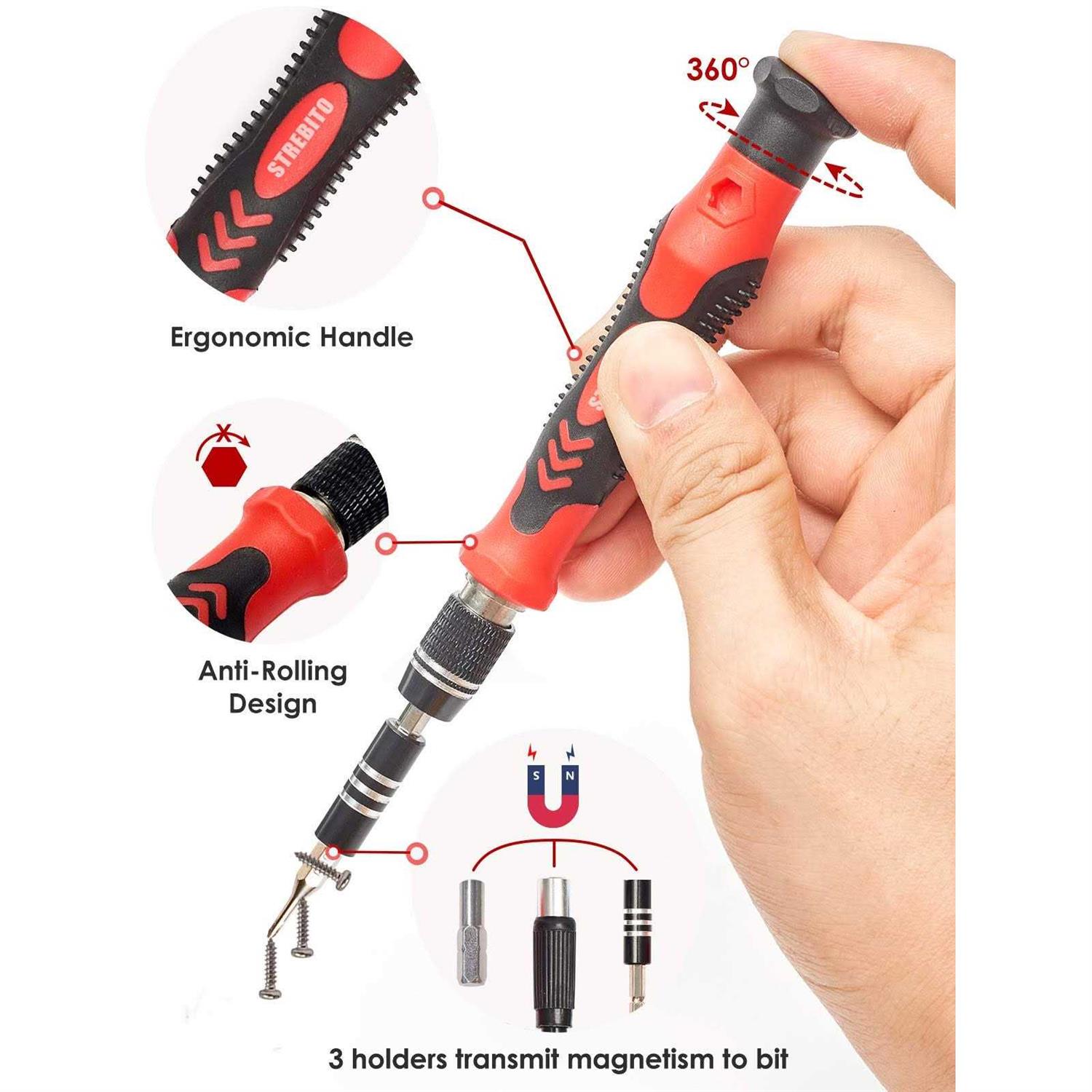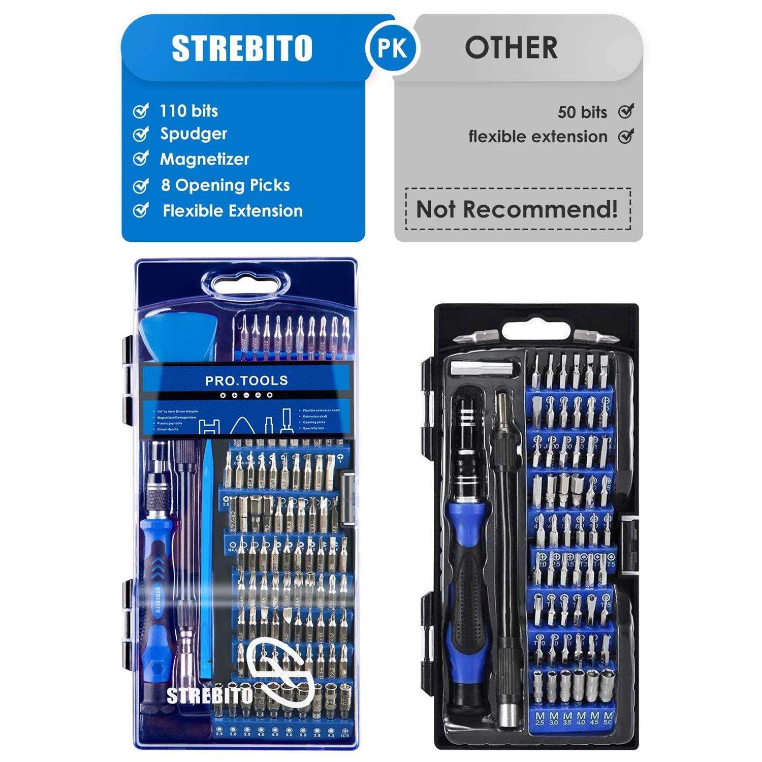 STREBITO Screwdriver Sets 142-Piece Electronics Precision Screwdriver with 120 Bits Magnetic Repair Tool Kit for iPhone, MacBook, Coumputer, Laptop, T