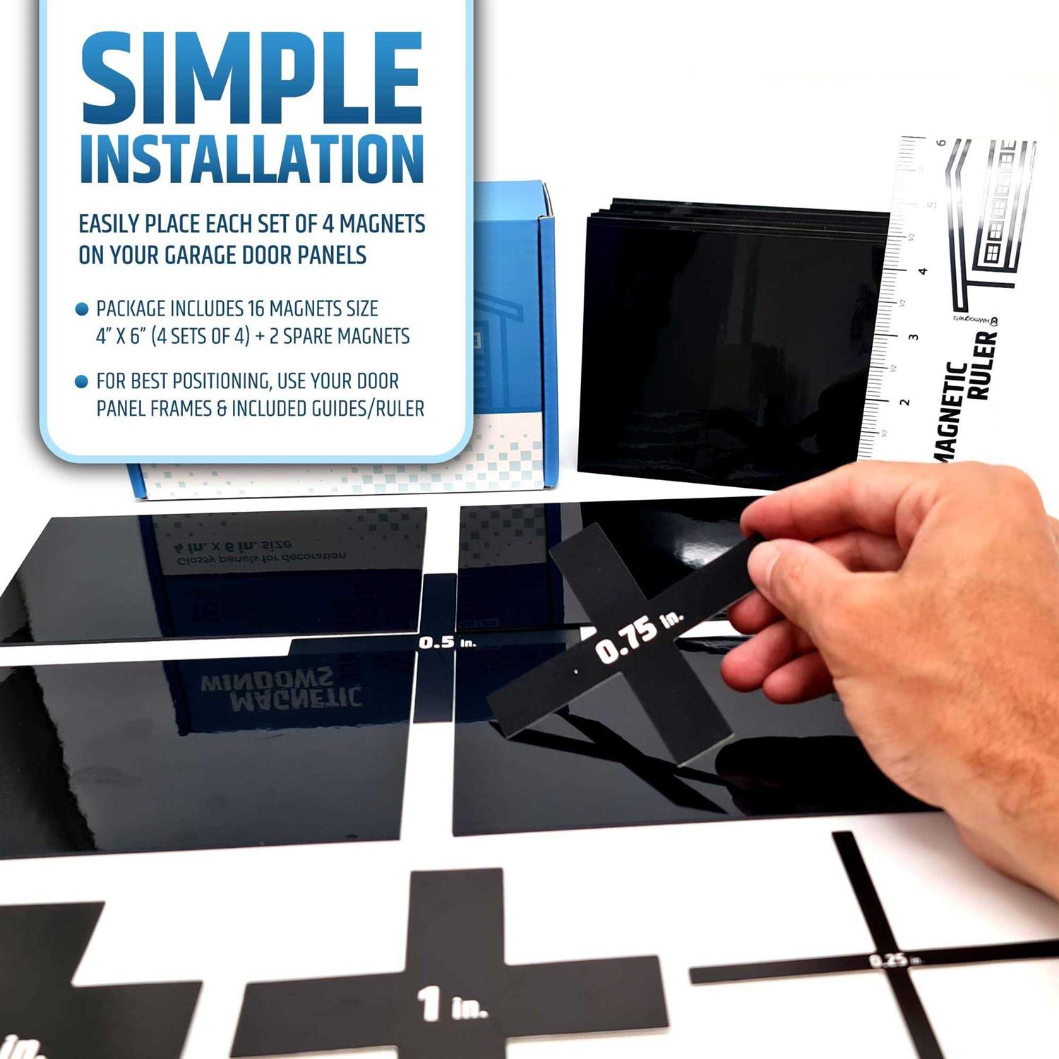 Make sure that the size of each garage door panel is at least 8.5X12.5 inches to ensure that 4 magnetic panels will actually fit. Make sure your garage door is magnetic. Last, window frames are not included in this package. ️ EASY GARAGE DOOR MAKEOVER (Fits 1 Car Garage) – HMmagnets decorative magnetic garage door windows (each panel is 4″X6″) will add a lot of style to your garage door (fits 1 car garages) in no more than 10 minutes! Compared to purchasing a new garage door, this DIY solution will easily elevate your house with minimum effort. Your neighbors will even think that you got a new garage door 😉 ️ LOOKS MORE LIKE REAL WINDOWS – Using higher quality layers with a glossy effect make these garage door windows look like actual windows without the “dull” appearance others have. The magnetic panels will create a reflection from afar to give them a real window look. From close up, they look almost like real windows. Basically, you will end up with a curb appealing door! ️ WILL NEVER FALL OFF (REINFORCED MAGNETS) – The strongest magnets possible for such panels. They are very durable and will never fall or shift – not when the door goes up and down, not when washing your garage door and not in ANY type of weather. All layers of the magnetic windows will withstand heat, cold, water, strong winds and they will not peel or curl up. ️ You won’t have to struggle to align and position the magnetic panes on your garage door. Use our simple yet detailed DIY instructions to finish the job in less than 10 minutes! Strong & Glossy Magnetic Garage Door Windows – Looks Like Real Window Panels/Faux Panes – Decorative Hardware Kit – Easy to Align & Will Never Fall (Upgraded Magnets) | Fits 1 Car Garage | 16pcs 4″X6″