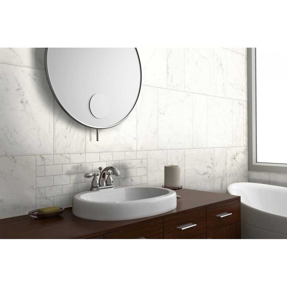 The gorgeous Carrara Marble, with its classic white and gray veining, has been used for centuries in homes and public venues. The issue with real marble is that it will change, age and wear over time. Futuro is the future of marble looks for your wall, floor, or backsplash. Made of porcelain tile with an average lifespan of more than 50 years, Futuro will maintain its clean, eye-catching appearance for the life of the building. Durability tested for residential and light commercial applications, Futuro also comes in a wide variety of sizes to make your project seamless and easy to finish. Bullnose to complete the design.