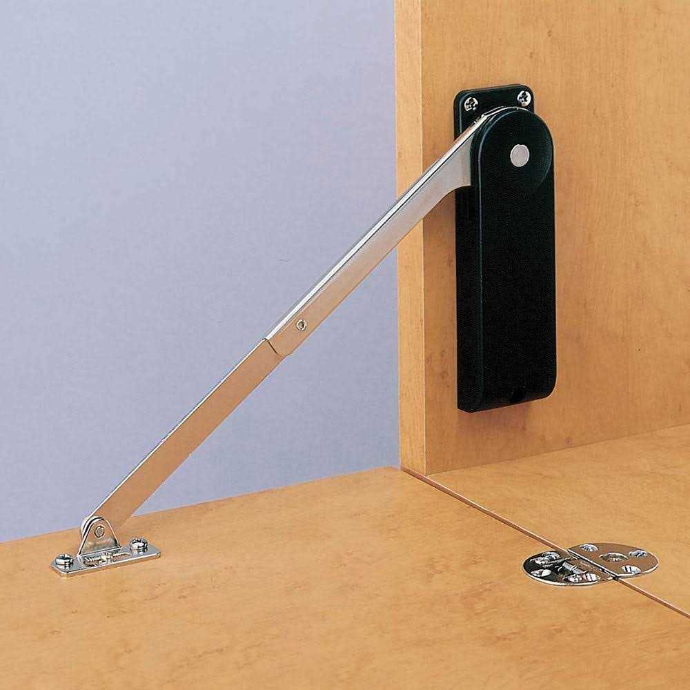 The sleek profile of these soft-down drop-front supports makes for an attractive appearance when the cabinet is open. Available in Light-, Medium- or Heavy-Duty models, they can be used for applications ranging from small downward-opening flap doors to drop-front desks. Once closed, they hold the door in the vertical position See the Technical Documents for installation instructions, and to determine the correct tension for the weight and size of your door.