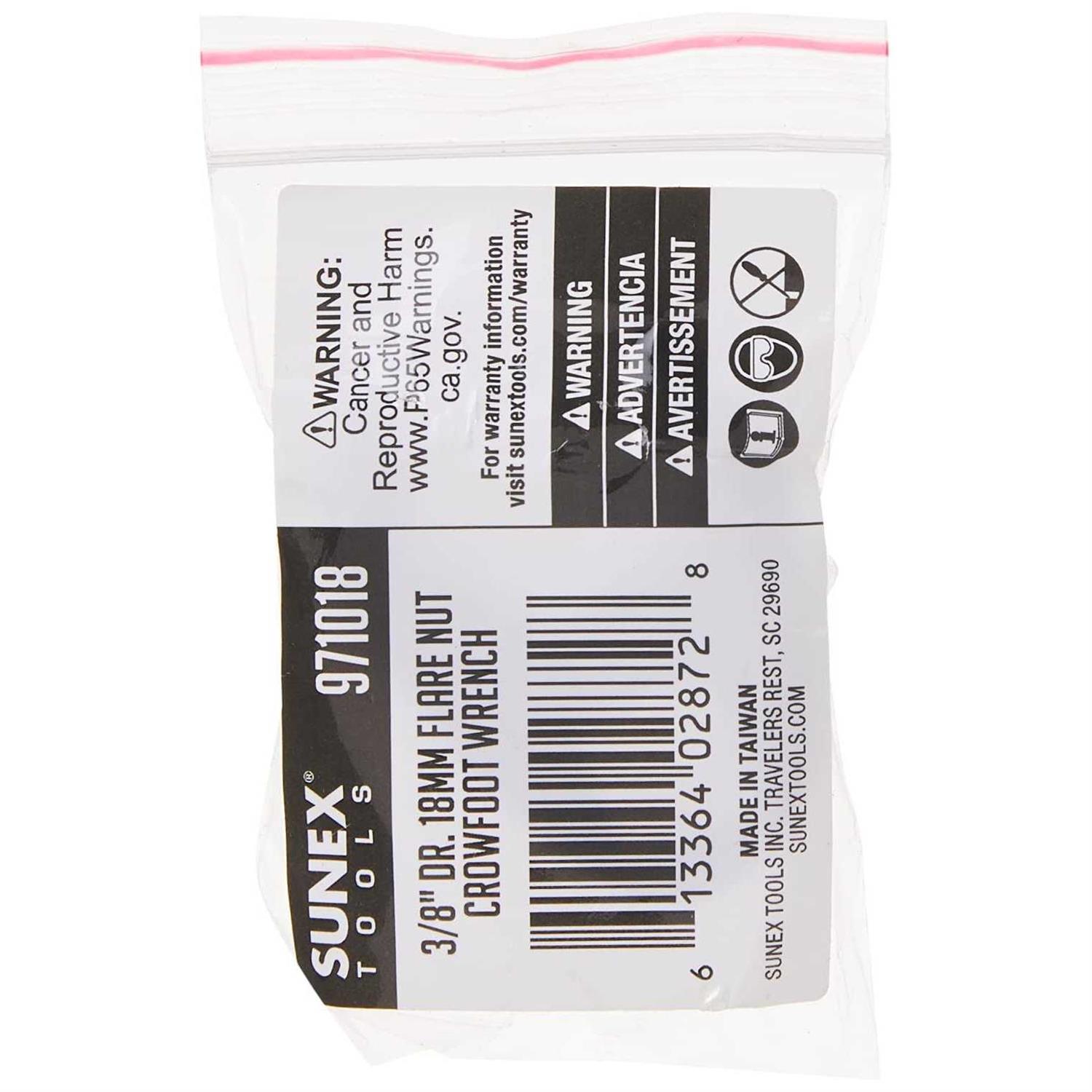 Sunex 971018 Drive 18mm Flare Nut Crowfoot Wrench