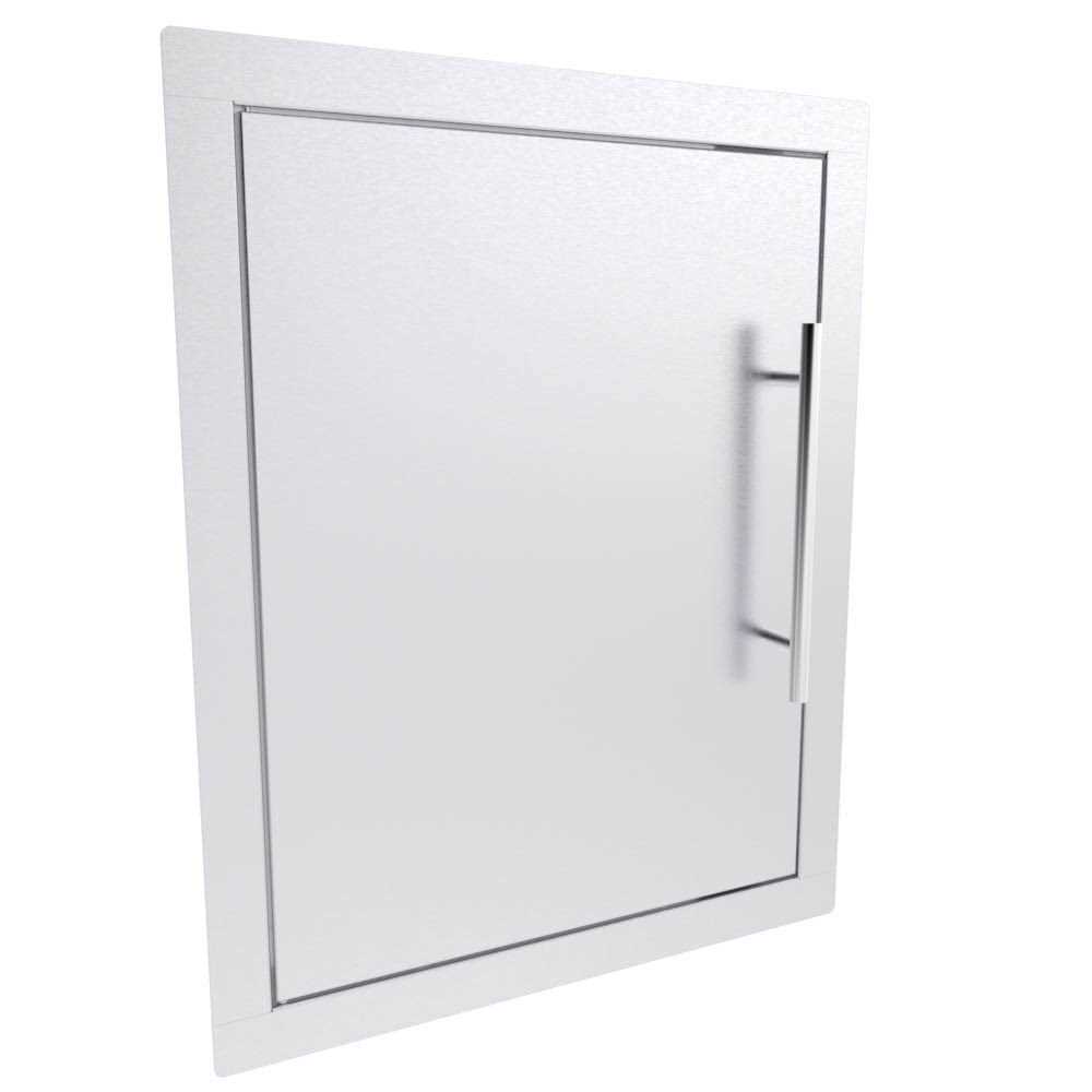 Reversible Single Door compliments most Sinks or Side Burners locations and because of its unique versability, it works well with your cleanup or serving zones as either Left or Right Swing by simply rotating the door 180 degrees. The open-door design allows up-to 120° opening as to protect the door panel against dinging on the exterior island finish. The Door is sized to perfectly blend with all other Texan Series with matching Height for a Designer Appeal. The Product Size is 16-1/4 in. W x 20-1/2 in. H x 1-3/4 in. D and the Cut-Out is 14-1/2 in. W x 19 in. H. The Door is great for easy access for any gas-lines running to the grill and giving clear access for extra storage with clear access. With the 304-Stainless Steel Rod Handle you have the most stylish BBQ Component and most durable for years to come. Constructed with all 304 stainless steel frame, paneling, and galvanized enclosed drawer box which is protected and safe from the weather. The double door unit is designed to blend perfectly with most other industry Brands, BBQ grills and components with its even toned #4 horizontal light brushed finishes and all large stainless steel rod handles. Texan Series are built with care and craftmanship from your friends at Sunstone Metal Products LLC., a Proud Texas Company.